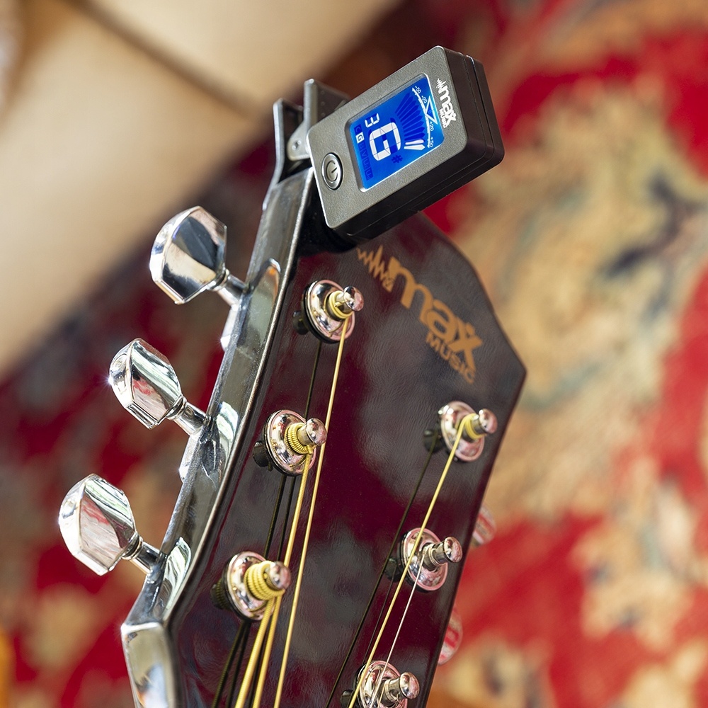 В начале вашего приключения может быть сложно настроить гитару на слух, но входящий в комплект цифровой тюнер пригодится.