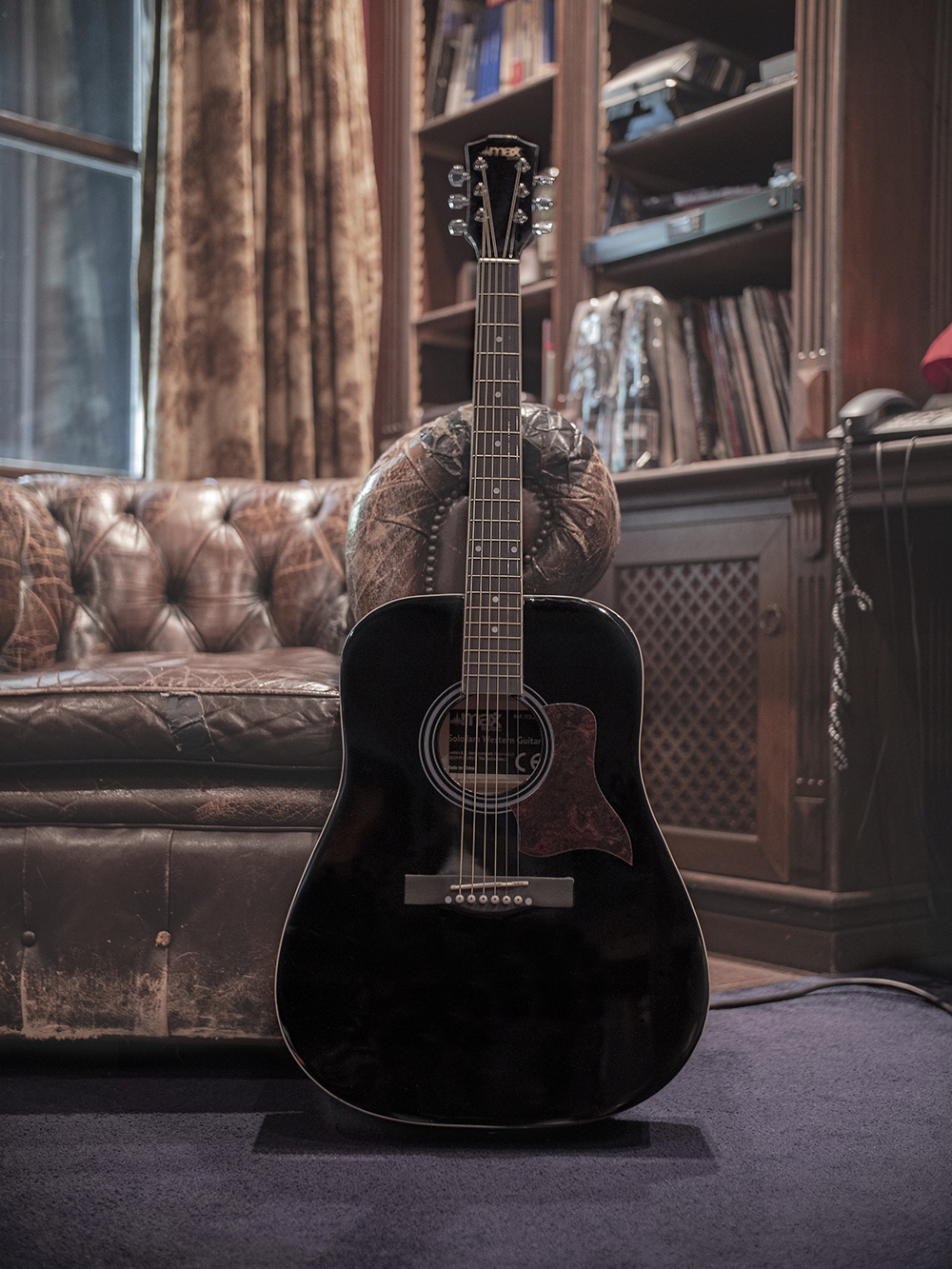 - 1 полноразмерная акустическая гитара в стиле вестерн.
