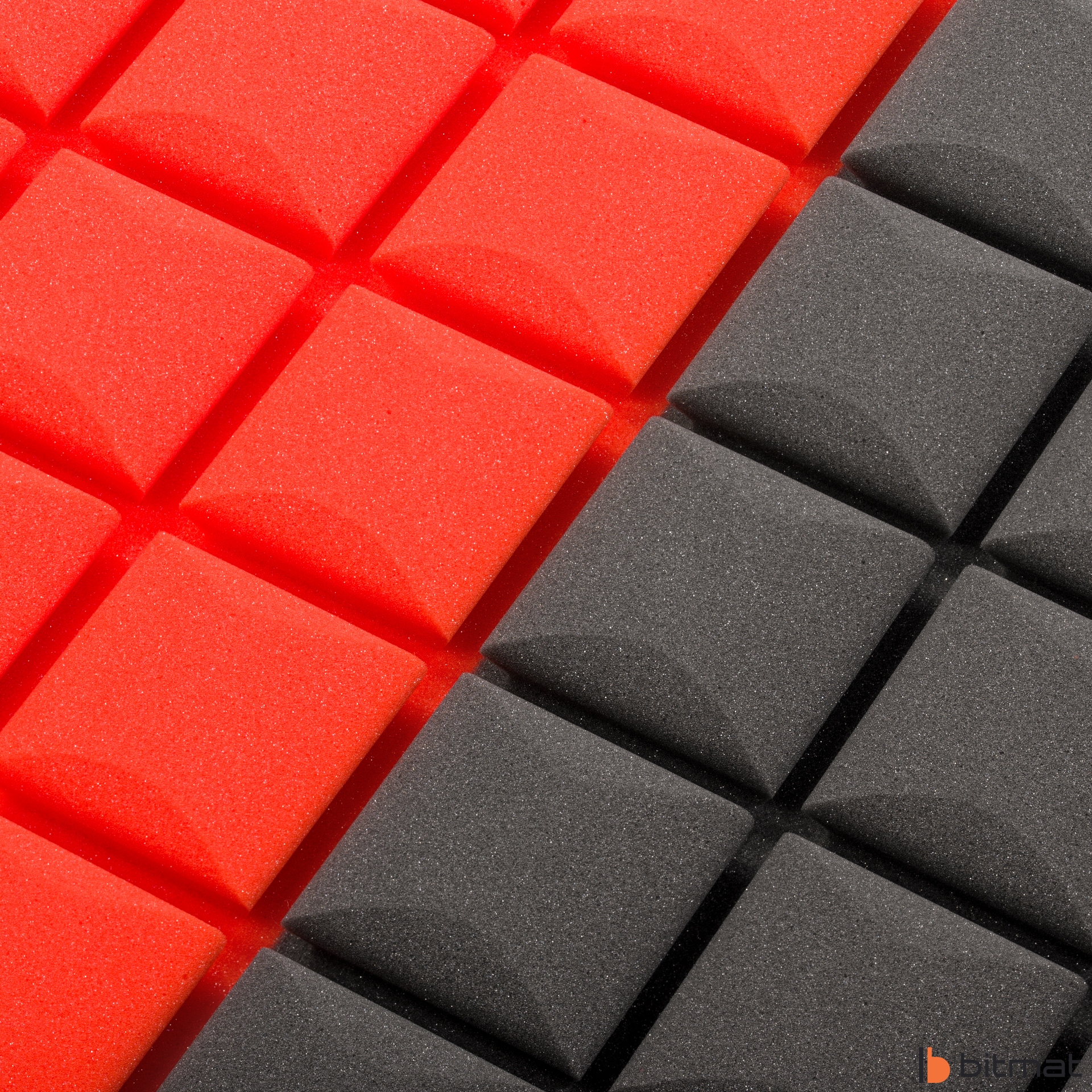 Акустическая выпуклая кубическая пена Bitmat, также называемая акустической панелью, изготовлена из вспененного полиуретана и имеет структуру с открытыми ячейками. Использование соответствующих конусов отлично работает в студиях, музыкальных комнатах/учебных кабинетах, поскольку улучшает разборчивость речи и вокала. Это оптимальное приложение, которое при относительно небольших затратах позволяет предотвратить реверберацию, улучшить качество звука в жилых и рабочих помещениях, создать современный дизайн.