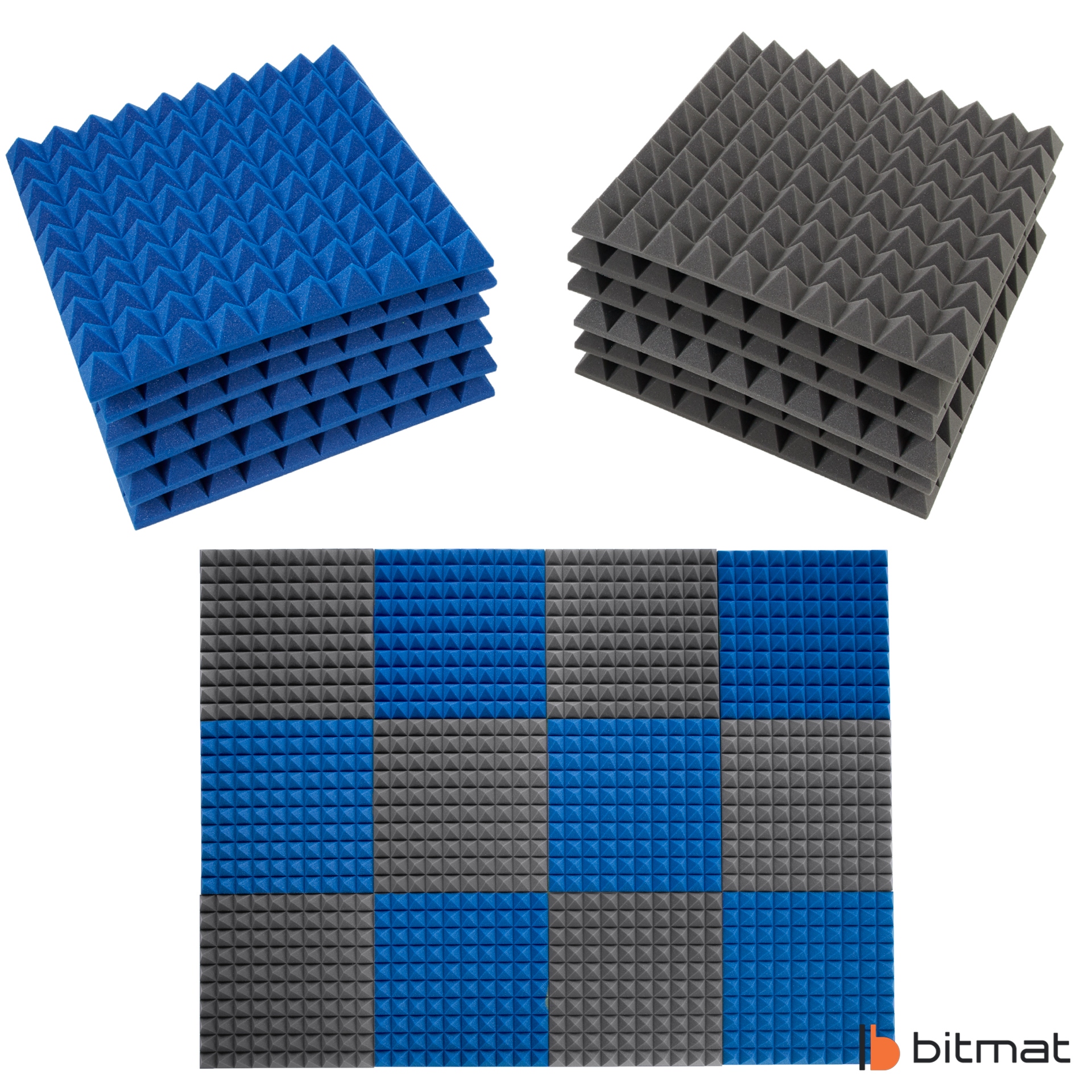 6 акустических панелей пирамидка серого цвета (графит) + 6 акустических панелей пирамидка темно-синего цвета