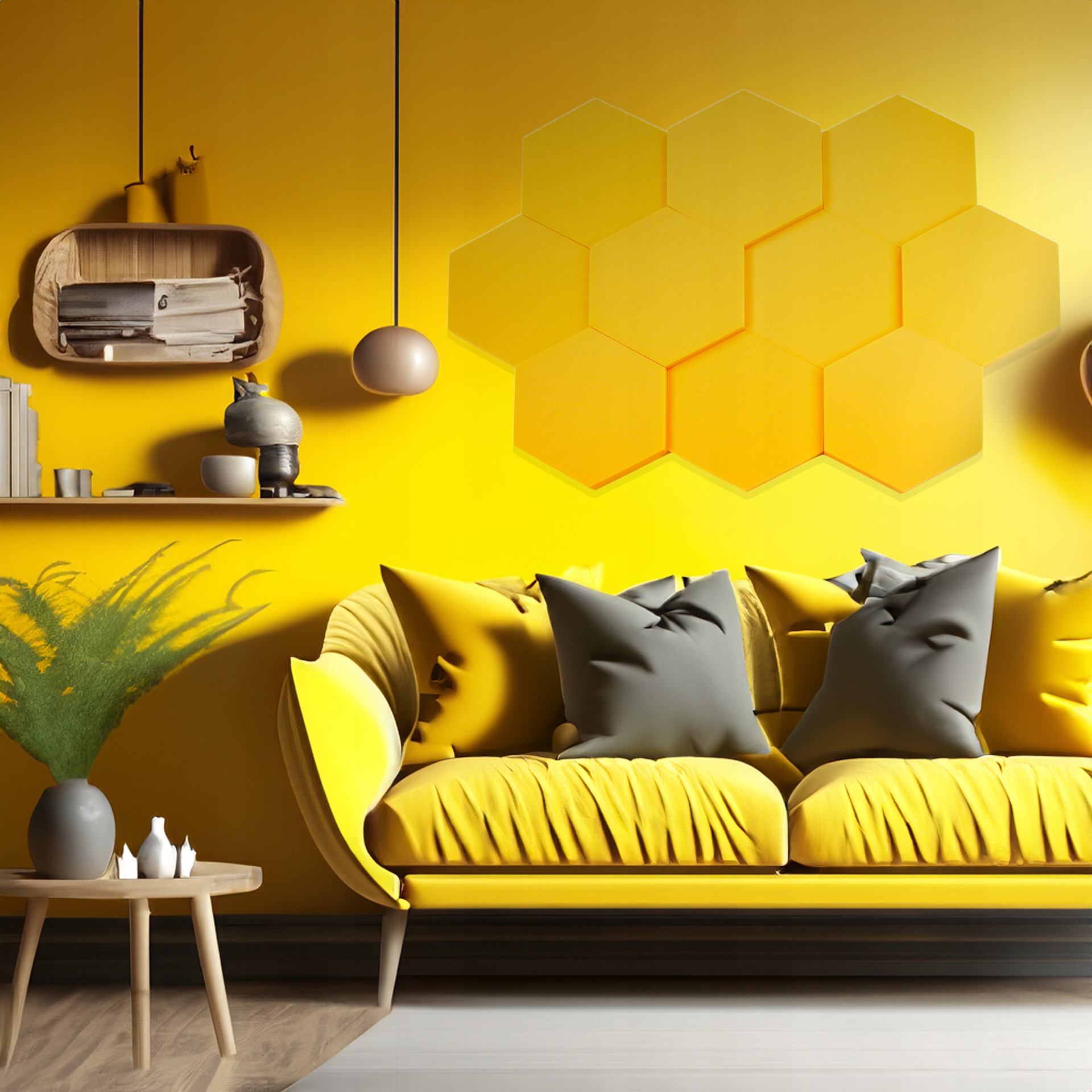 Шестиугольные панели из акустического пенопласта 3 см и 5 см, желтые