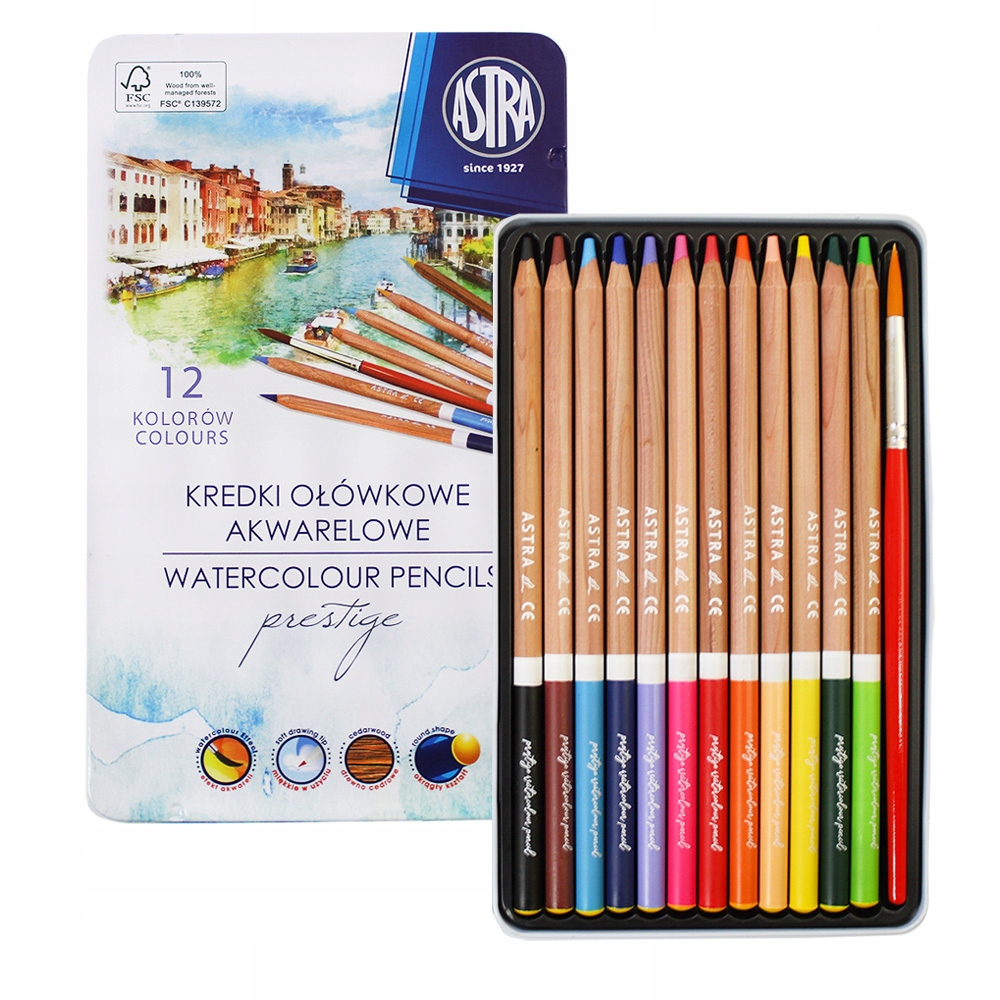 Акварельные карандаши кедровое дерево Astra Prestige 12