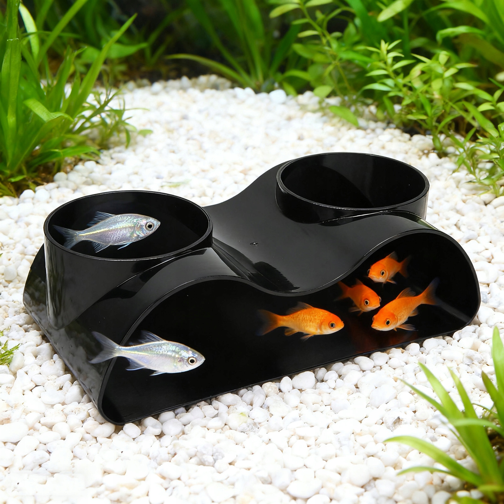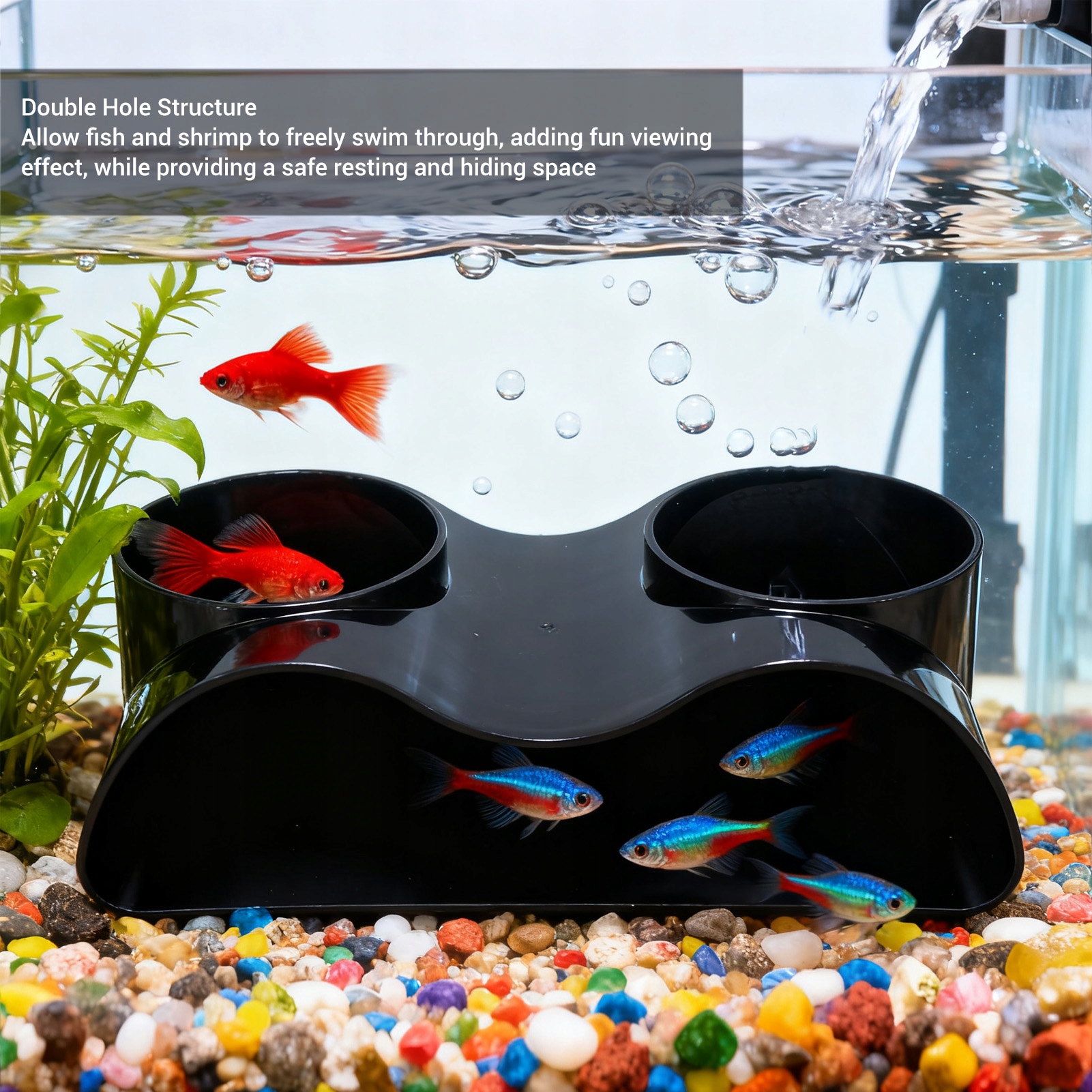 2. Структура с двумя отверстиями: конструкция с двумя отверстиями позволяет рыбам и креветкам свободно проходить сквозь них, создавая интересный эффект просмотра, обеспечивая при этом безопасное место для нереста и укрытия.