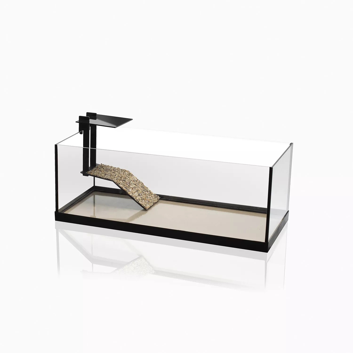 АкваТеррариум — специализированный аквариум, предназначенный для водных и наземных животных, например. черепахи. Мы оснастили его необходимыми аксессуарами, чтобы удовлетворить самые важные требования будущих жильцов. Имеет эффективный фильтр (500л/ч) и платформу с нескользящим покрытием из натурального гравия. Нижняя рама защищает дно резервуара от повреждений. Современный дизайн и эстетичное исполнение делают АкваТеррариум интересным элементом декора любого помещения.
