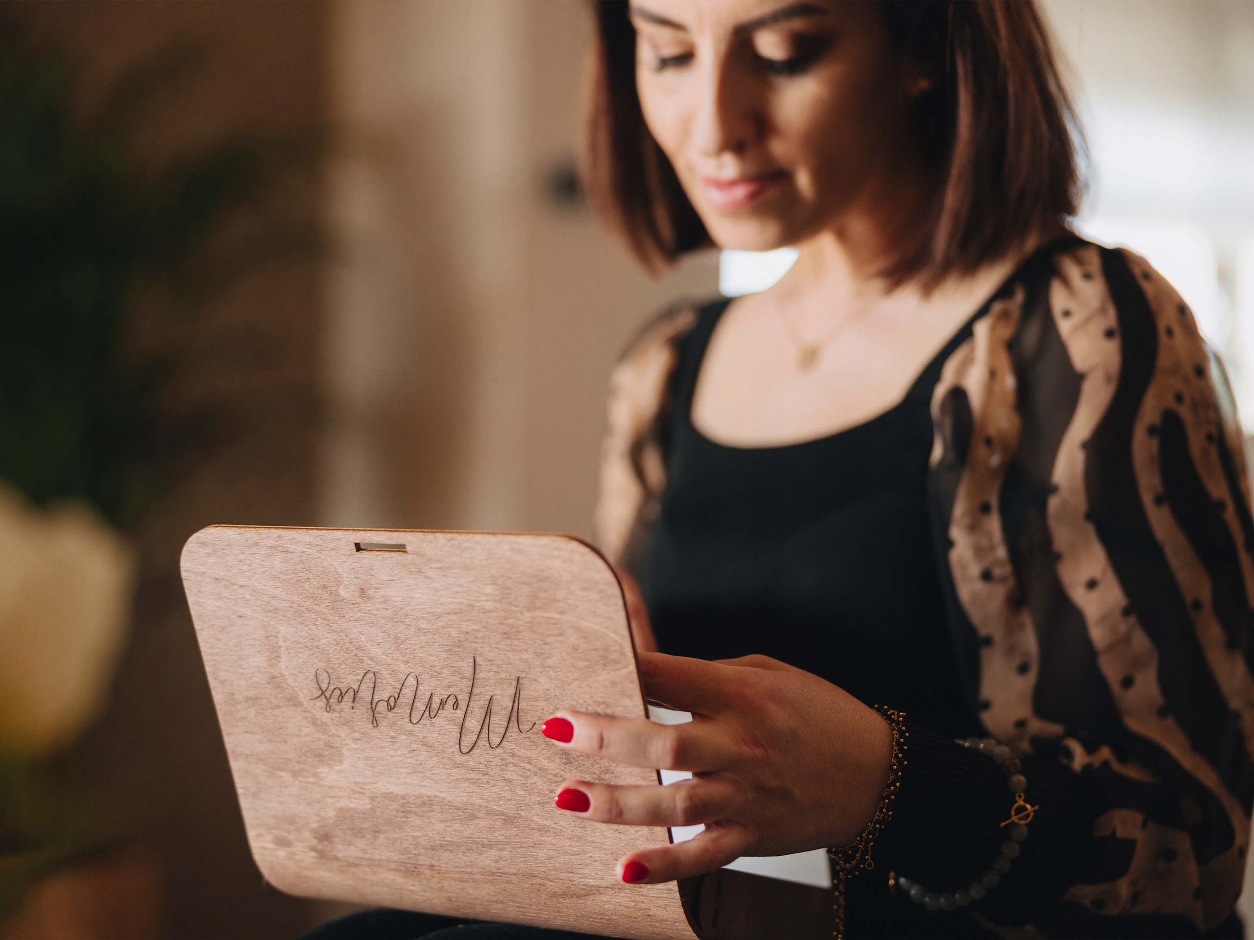 Отполированная вручную коробка для фотографий была защищена маслом. Благодаря этому наш продукт приятен на ощупь и имеет характерный запах.