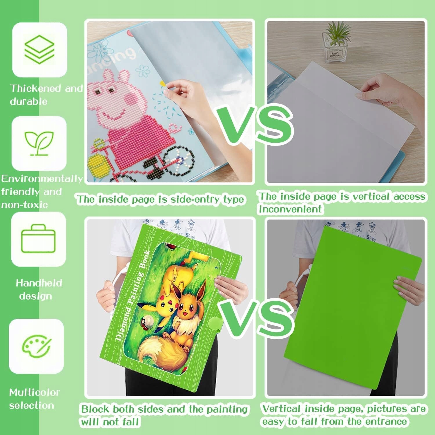 - 【Гуманизированный дизайн】 Альбом для алмазных картин формата А3 имеет ручку, которую легко переносить, прочный и не повреждается; сбоку имеется пряжка, которая предотвращает выпадение страницы; верхняя сторона открыта для легкого доступа.