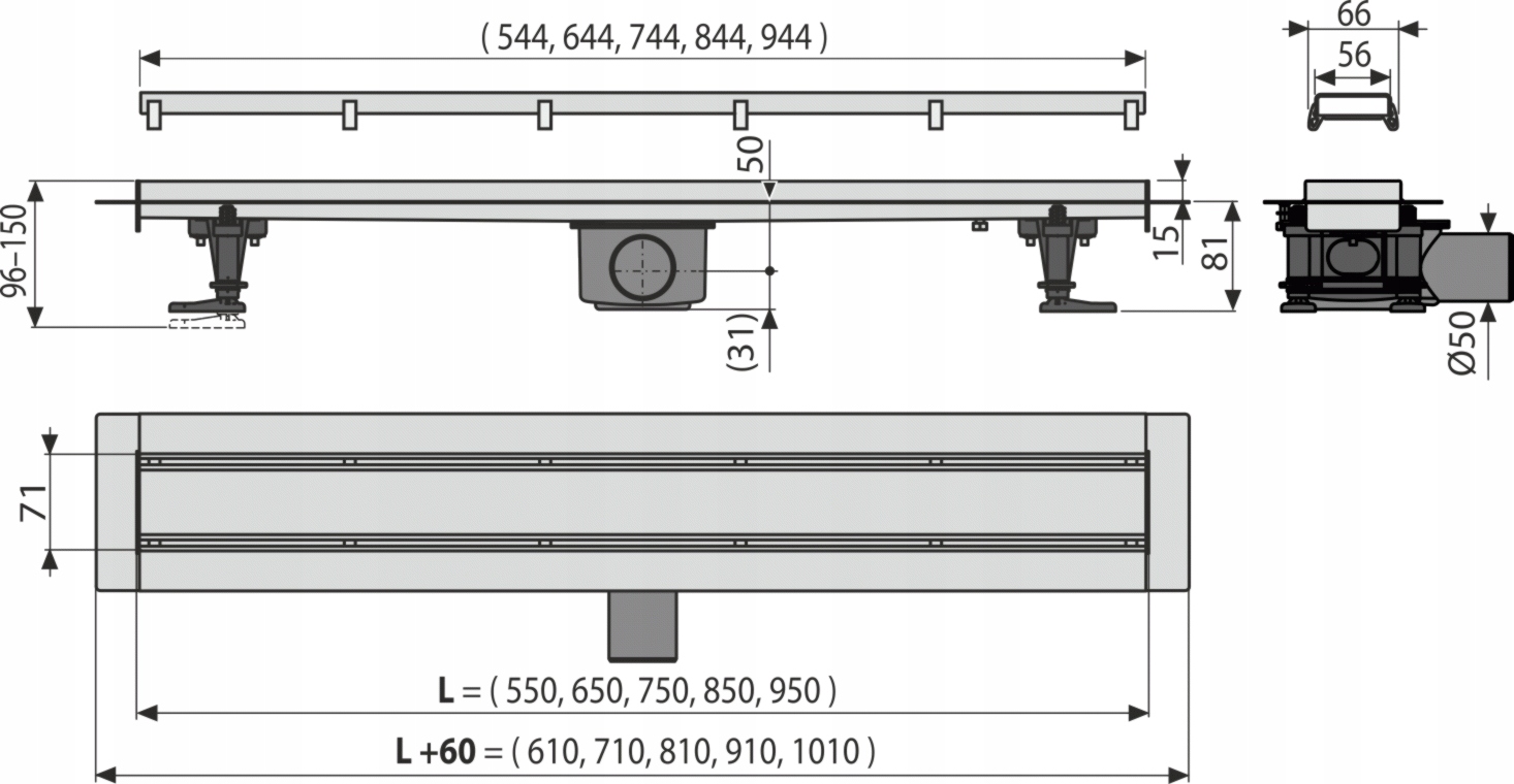 Alcaplast Fit and Go Линейный выход 75 см