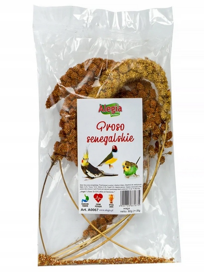 Традиционно является пищей волнистых попугаев и других экзотических птиц. , но также прекрасно дополнит рацион мелких грызунов (хомяков, мышей или песчанок). Это богатый источник натрия, калия, кальция, магния, минеральных солей и витамина А. Поедание зерен проса из початков – идеальное занятие для улучшения самочувствия.