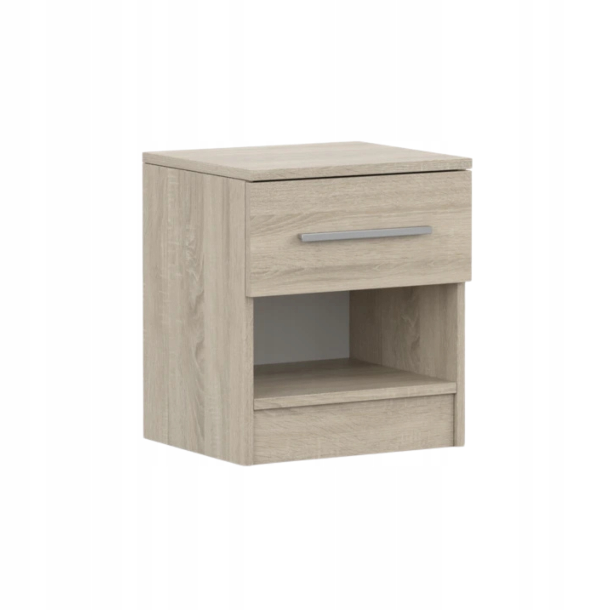 - Прикроватные тумбочки имеют один вместительный ящик с серебряными ручками.