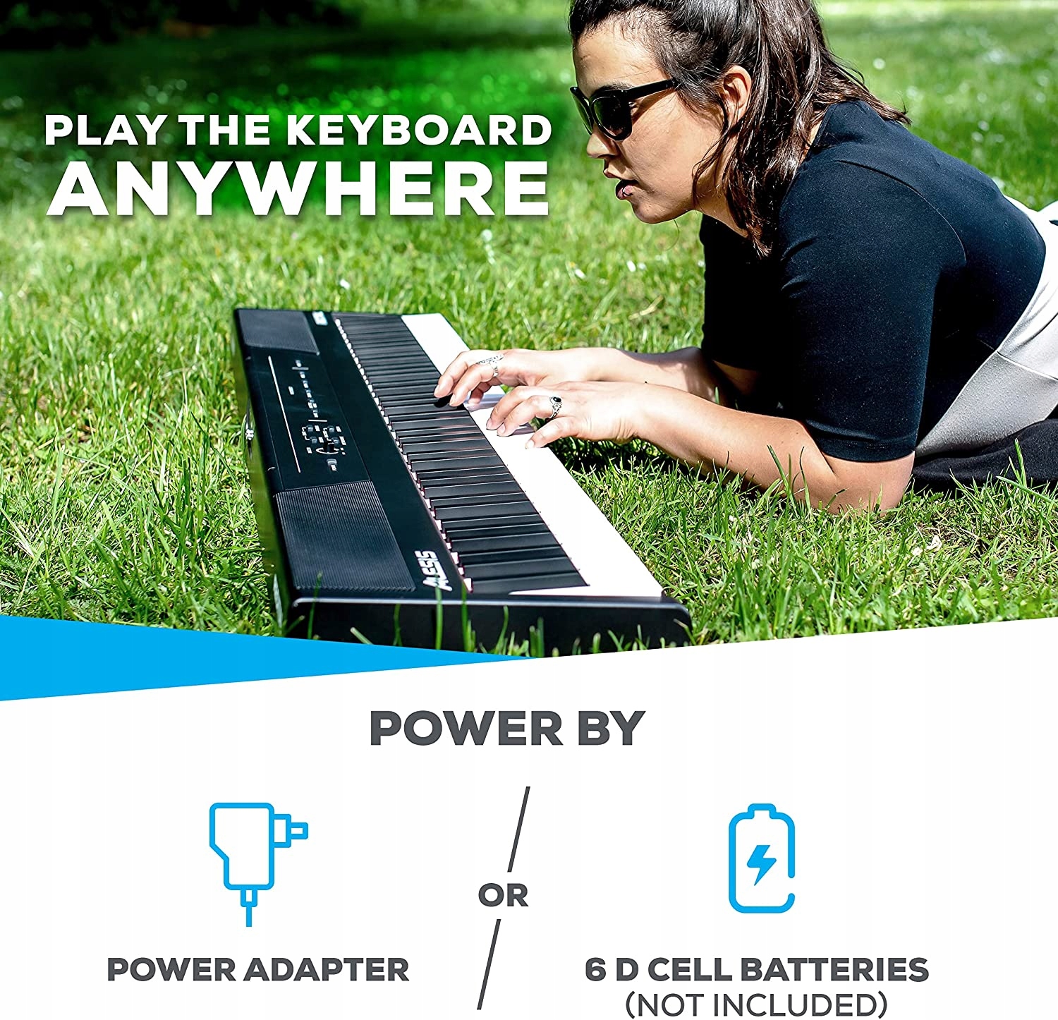 - Играйте на клавиатуре, где бы вы ни находились. : Питание от прилагаемого блока питания или 6 батареек D (продаются отдельно) позволит вам выступать где угодно.