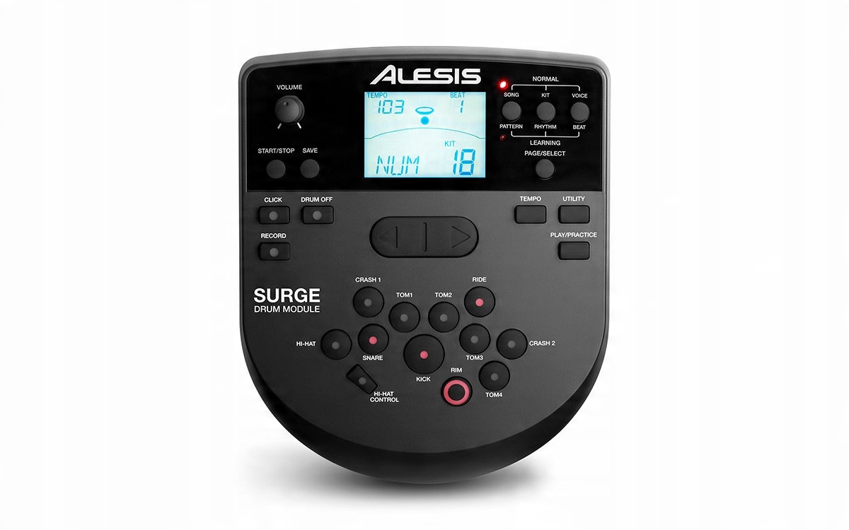 Alesis Surge Mesh Special Edition имеет специальный модуль под названием Surge Drum. Он содержит 385 звуков и полезные обучающие функции.