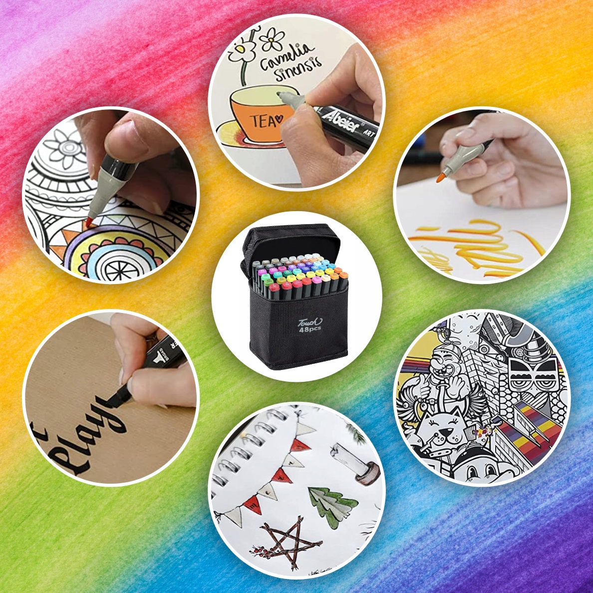 АЛКОГОЛЬНЫЕ МАРКЕРЫ 48 ШТ. Фетровые маркеры Маркеры Маркеры Двусторонние Pro + СУМКА