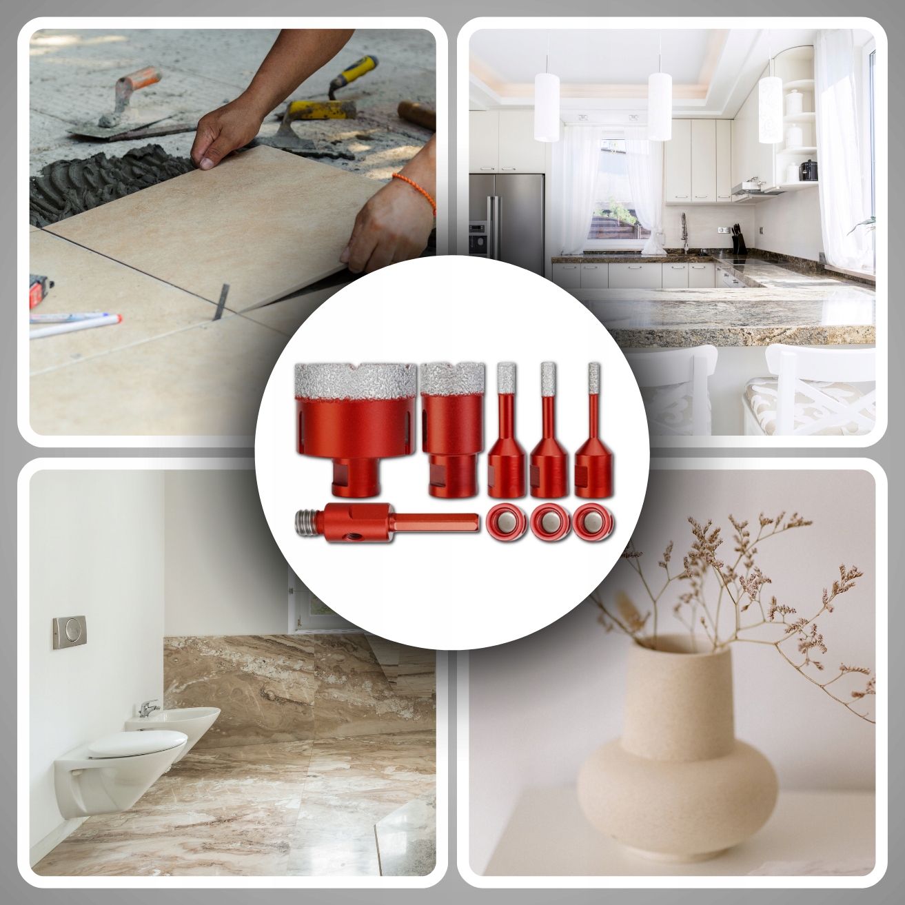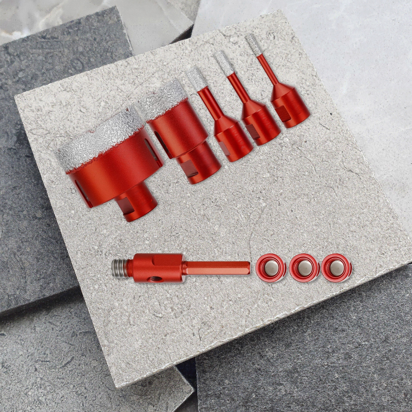 ✅ Универсальность использования: Набор предназначен для сверления различных материалов, таких как керамическая плитка, камень, керамогранит. и мрамор, как сухой, так и мокрый.