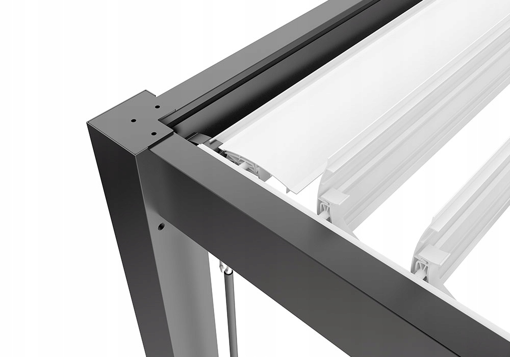 - Крыша: алюминиевые рейки с порошковым покрытием.