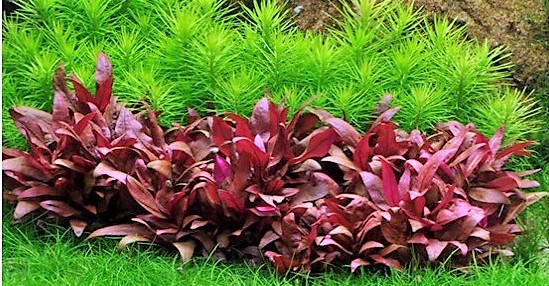 Альтернантера Рейнеки мини. Растение переднего плана. Его цвет оживляет аквариум и придает приятный красный цвет. Он легко растет и создает красивый передний план. У него оранжево-бордовые листья, которые прекрасно контрастируют с зелеными растениями.