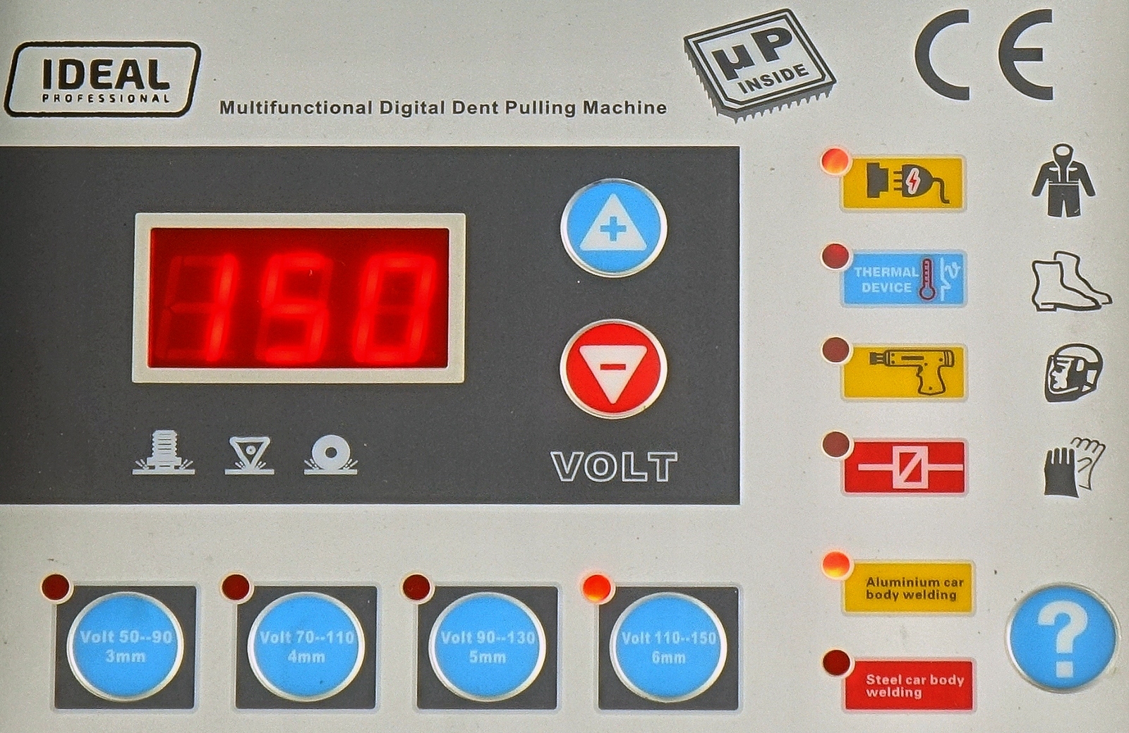 Это устройство с микропроцессорным управлением для удаления вмятин на алюминиевых и стальных кузовах автомобилей, эксплуатации по принципу электрических разрядов. Источник питается от однофазной сети напряжением 230В. Спотер предназначен для приваривания шпилек диаметром 3–6 мм к алюминиевым корпусам, а также треугольных и люверсных шайб М10/12 к стальным корпусам.