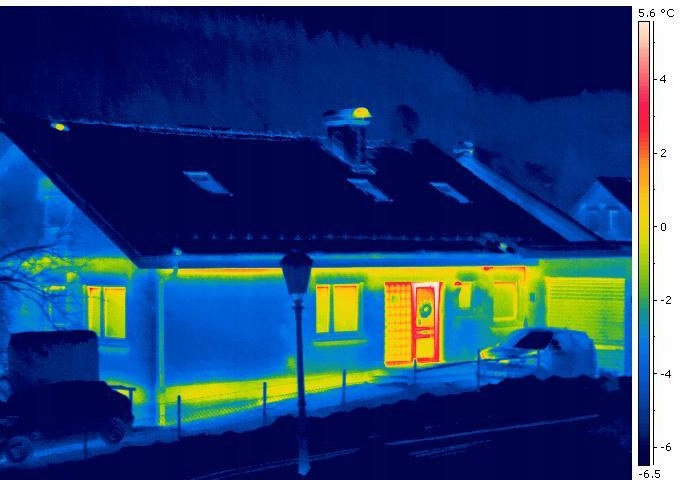 Фотографии дома в мюнхене, сделанной с камерой с тепловой визуализацией - крыша изолирована с помощью 30 -сантиметрового слоя минеральной шерсти, была дополнительно изолирована с помощью термо изоляции коврика Alufox.