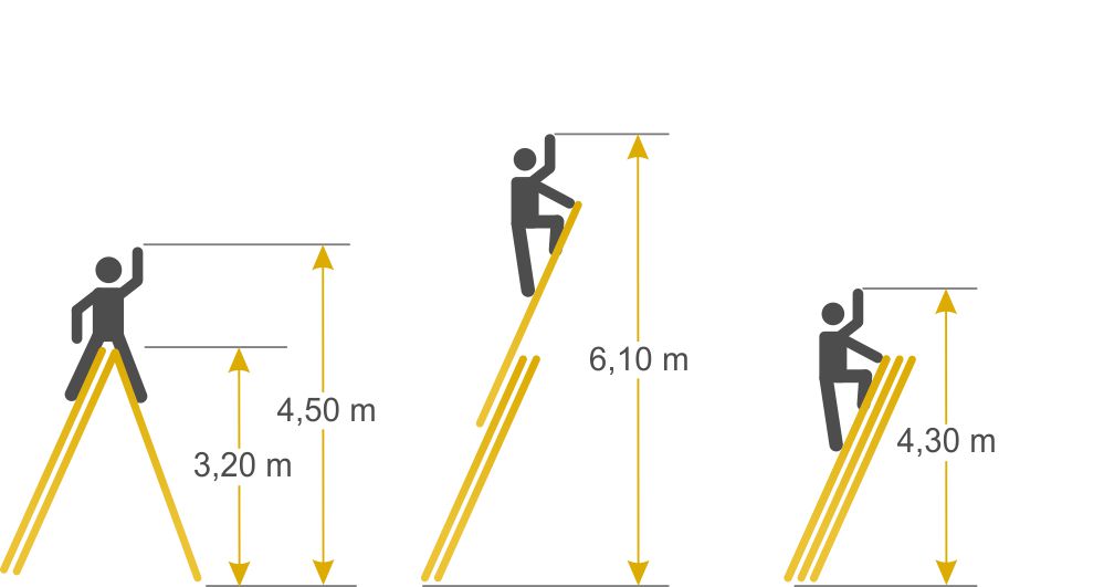 Сохраняет оптимальную жесткость даже при максимальном выдвижении (3 выдвинутые лестницы: 7,96 м, две выдвинутые лестницы: 5,70 м, одна наклонная лестница: 3,41 м)