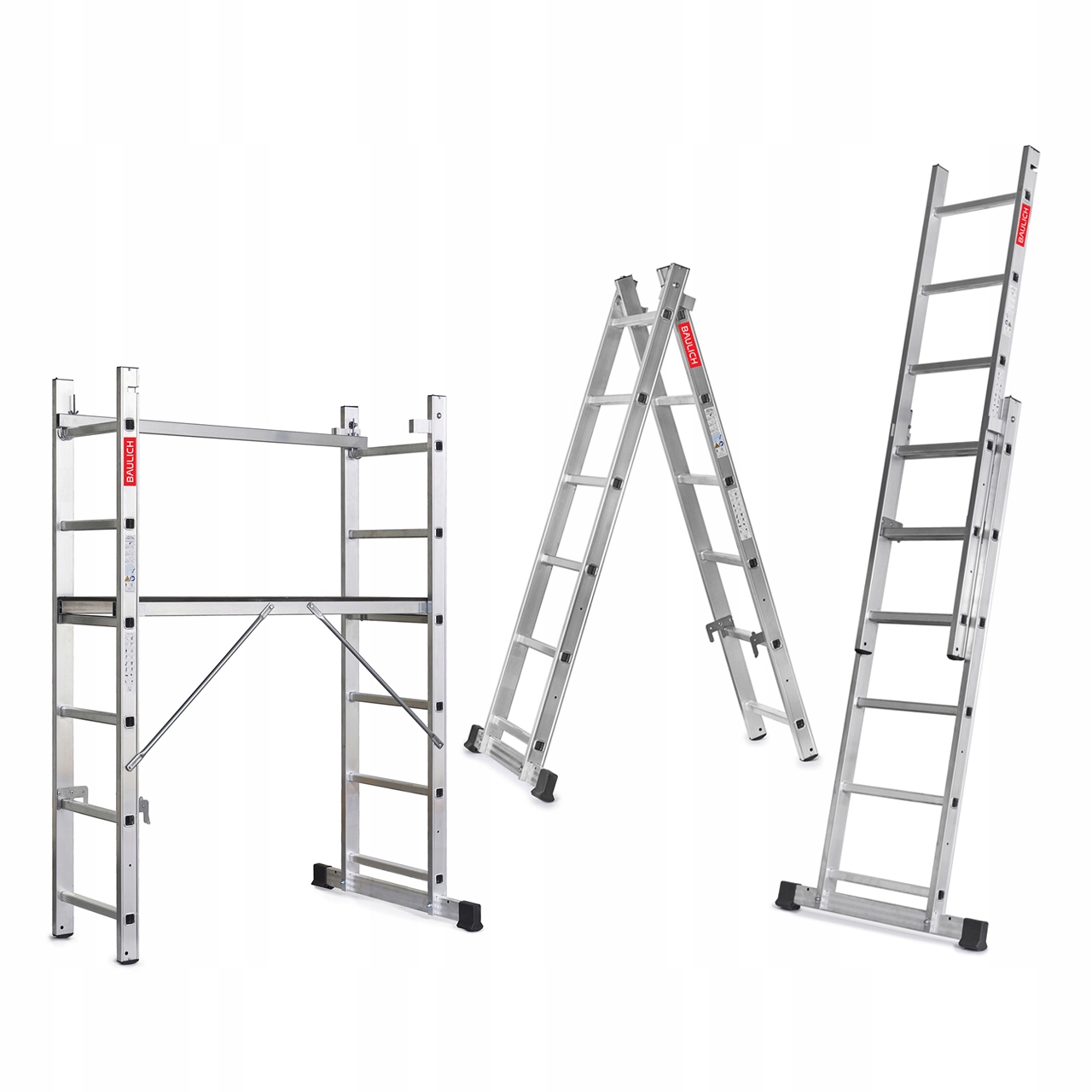 Скафолды состоит из двух алюминиевых лестниц и рабочей платформы. Он имеет стабилизационную перекладину, которая предотвращает любые колебания. Он оснащен специальными не -слабыми ногами. Алюминиевая лестница предназначена для многих приложений: ее можно использовать в качестве доступной, скользящей или свободной лестницы