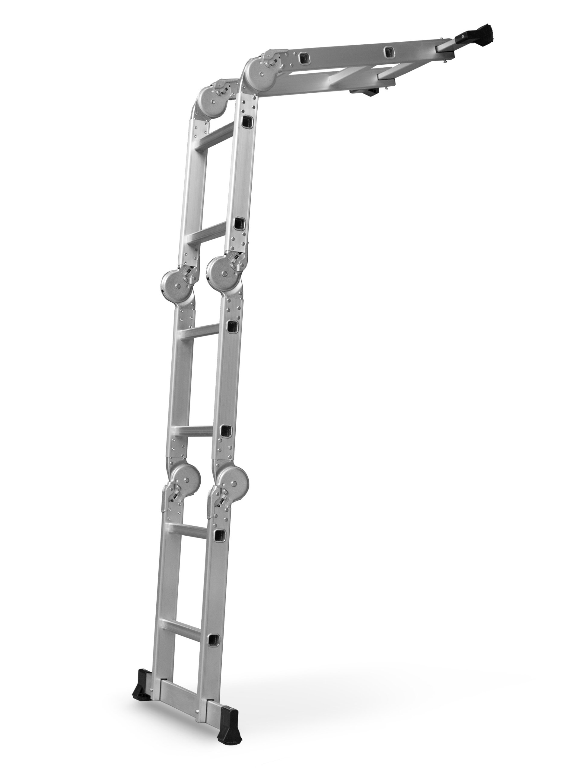 Многофункциональная шарнирно-сочлененная лестница. Благодаря множеству вариантов развертывания его можно использовать в различных ситуациях, даже в труднодоступных местах. Входящая в комплект платформа облегчает покраску. В сложенном виде лестница занимает очень мало места, что упрощает ее хранение и транспортировку.