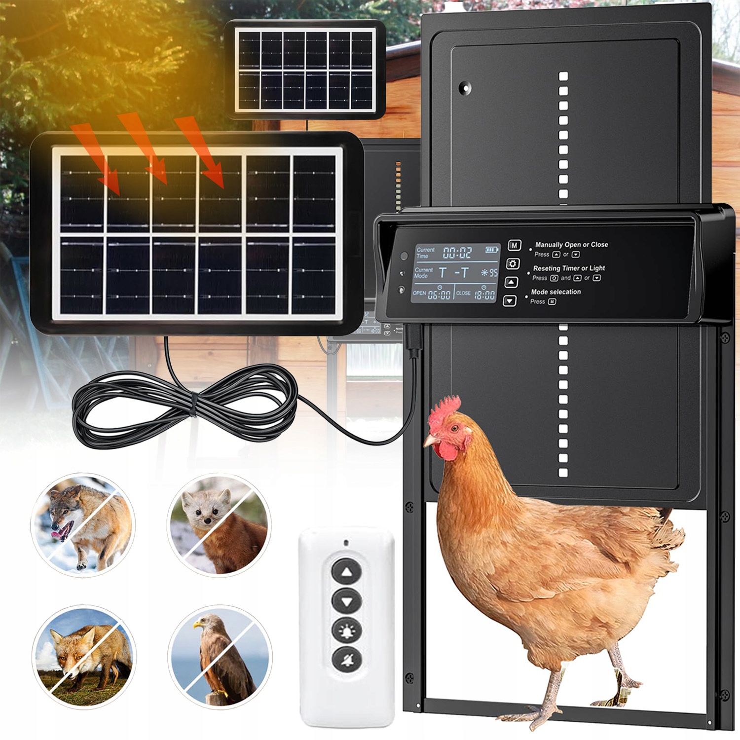 【Настраиваемые элементы управления】Автоматическая дверь курятника предлагает несколько режимов управления, включая режим датчика освещенности (автоматически открывается на восходе солнца и закрывается на закате), режим дистанционного управления (можно нажать кнопку, чтобы открыть/закрыть дверь), режим таймера (можно установить собственное время открытия или закрытия с помощью программируемого таймера) и режим ручного открытия/закрытия (возможность открыть или закрыть дверь в любой момент).