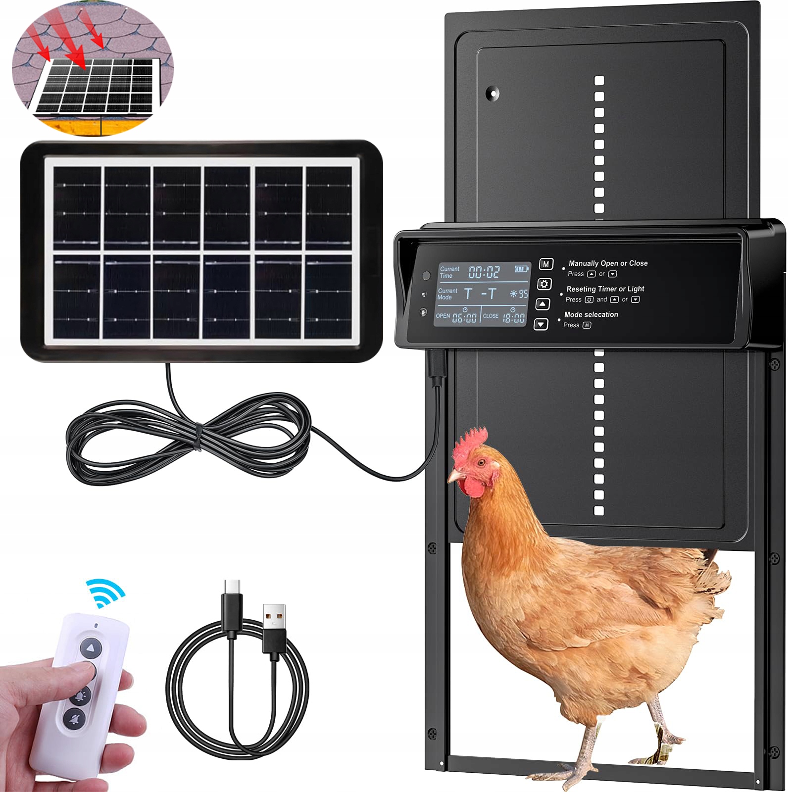 【Автоматическая алюминиевая дверца курятника с солнечной батареей】: Автоматическая перезаряжаемая дверь курятника с солнечной батареей имеет встроенную батарею емкостью 2000 мАч, которую можно заряжать через USB Type-C, что обеспечивает до двух месяцев использования без подзарядки. Их также можно заряжать с помощью солнечной энергии, что помогает защитить окружающую среду и сэкономить энергию. Оба метода зарядки обеспечивают более стабильное время автономной работы. Примечание. Рекомендуется устанавливать солнечную панель в месте, подверженном воздействию прямых солнечных лучей.