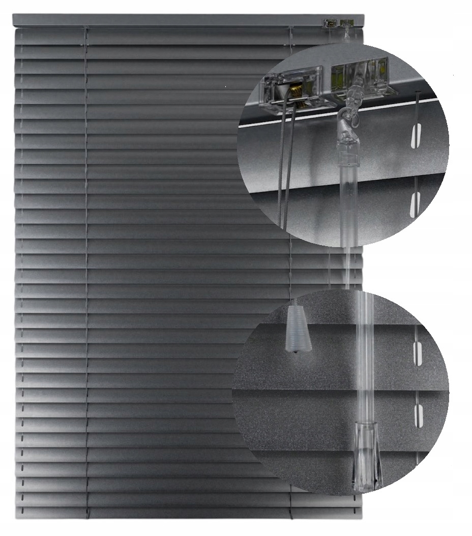 классический слепой поверхность контролируется ручкой для вращения ламеллов и струны для подъема и оставления жалюзи. Наиболее популярное предложение , которое можно установить на любой тип окна - вверх, в сторону, поверхности, не -инвазивного.