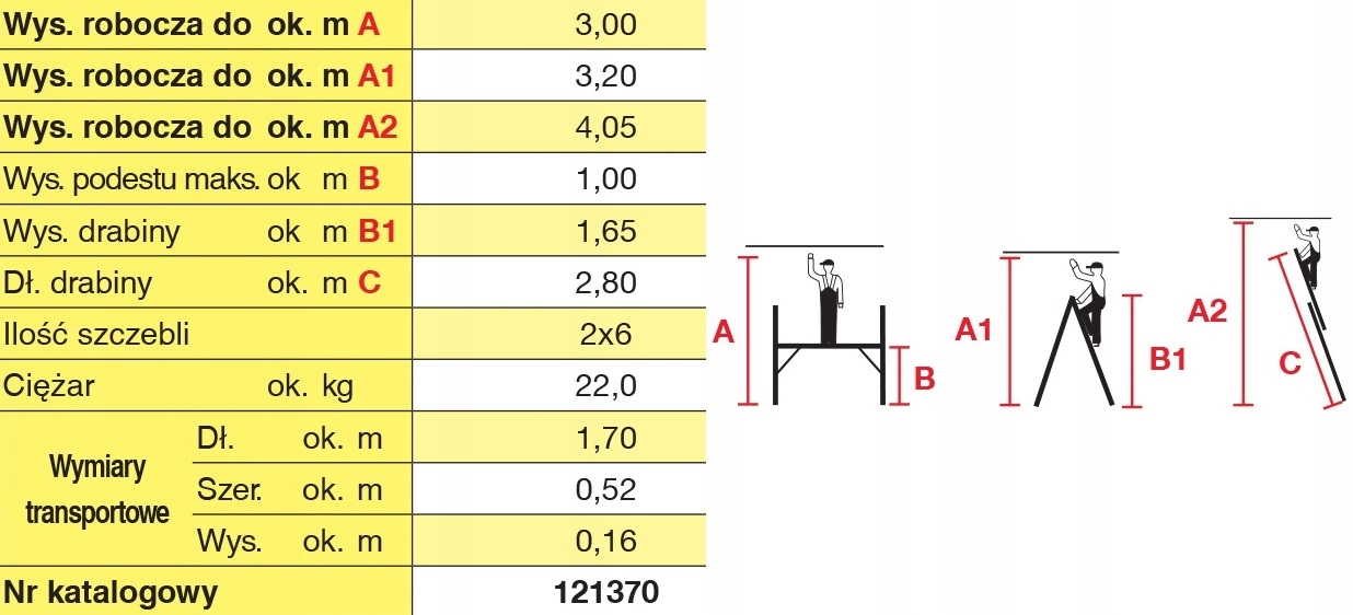 - Лестничные леса, состоящие из двух 6-ступенчатых приставные лестницы с широкими стабилизаторами у основания и рабочей площадкой с нескользящим влагозащитным покрытием из фенольной смолы с трафаретной печатью (147 х 50 см).