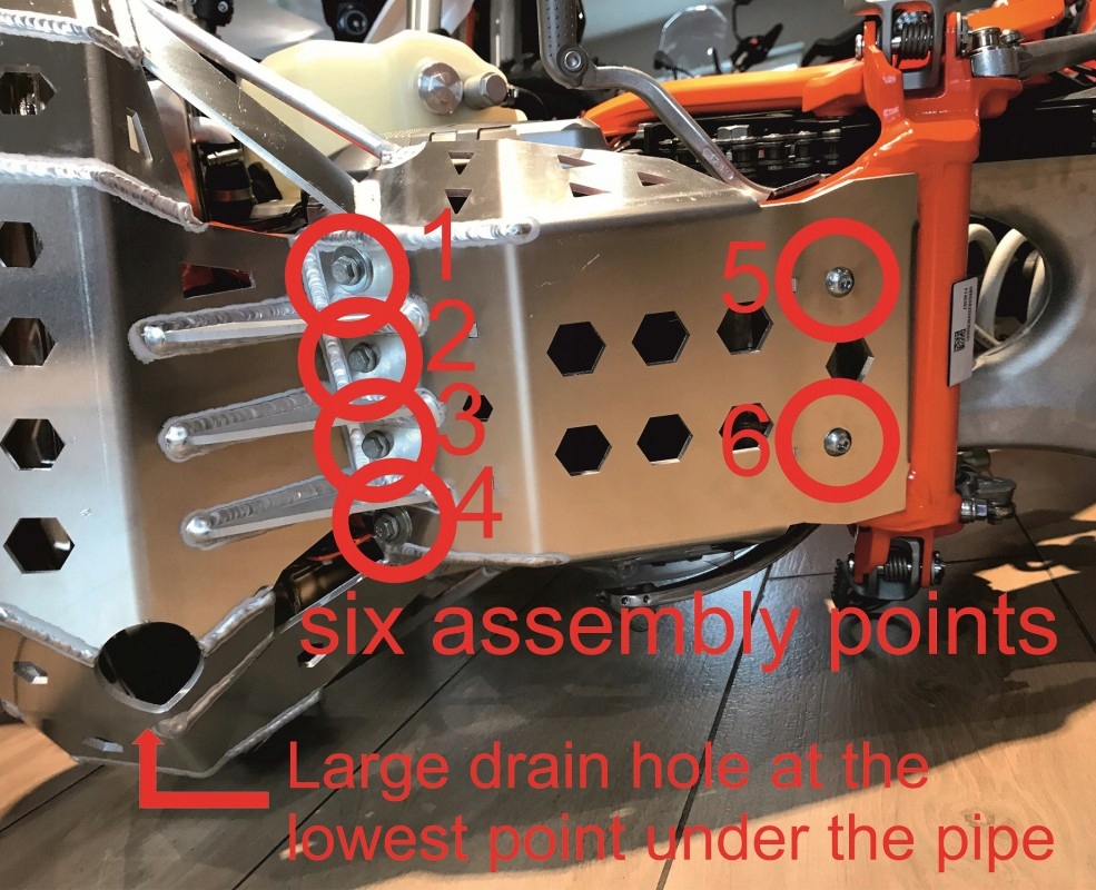 6 точек крепления - 2 стальных держателя сзади, алюминиевый держатель с двумя винтами спереди и двумя винтами крепления к гнездам в раме.