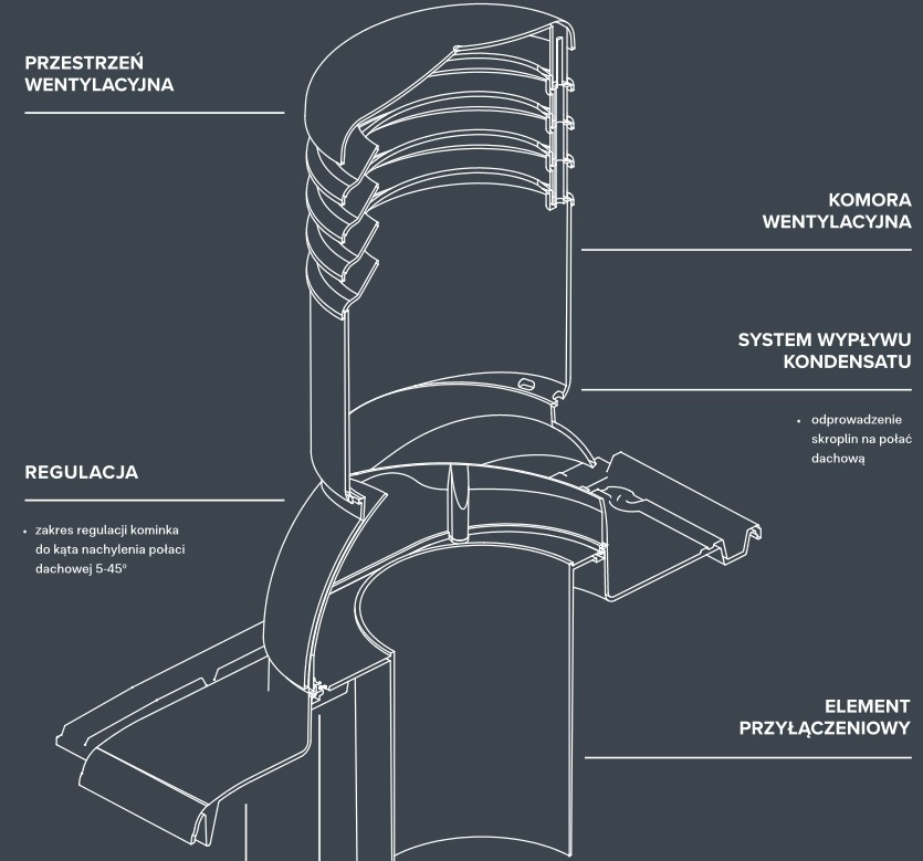 Комплексный алюминиевый камин под керамическую черепицу Creaton Premion с отводом конденсата (конденсата) наружу.Диаметр вентиляционного канала 150 мм.