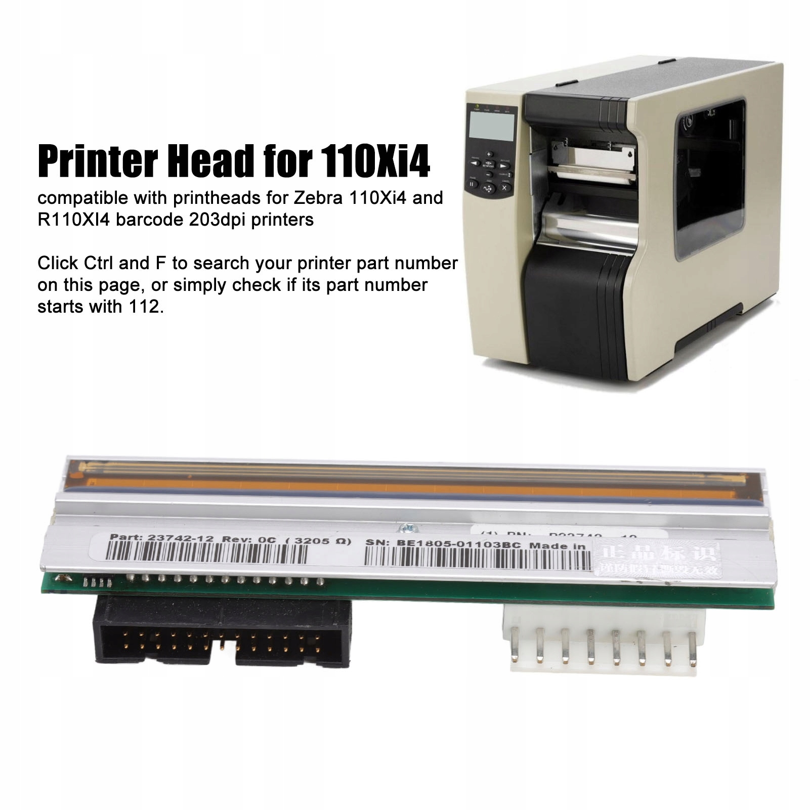 2. Метод проверки: чтобы проверить, подходит ли эта головка печати, нажмите на CTRL и F, чтобы найти номер части принтера на этой странице, или просто проверить, начинается ли его номер детали с 112.