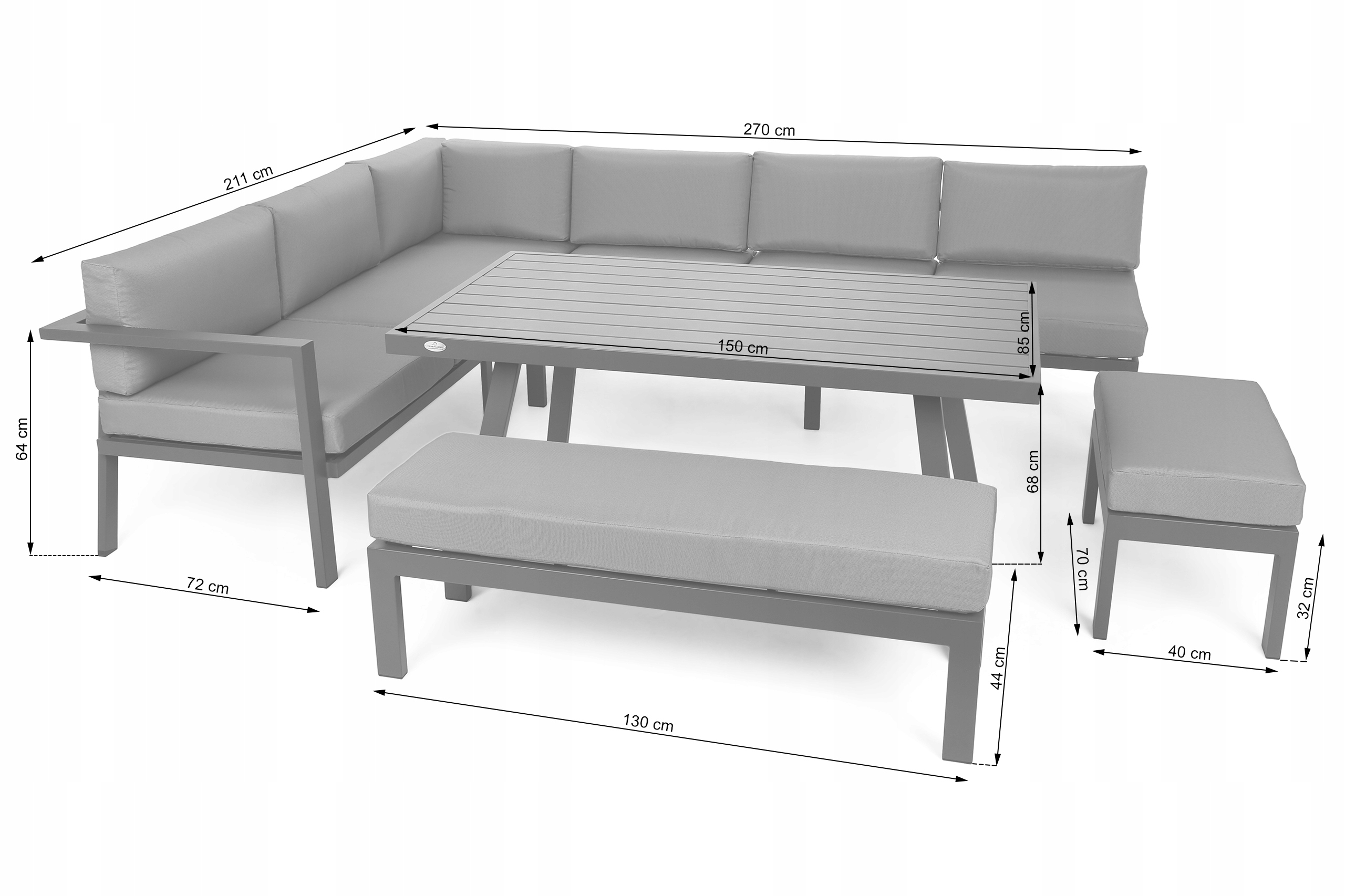 - Высота сиденья: все сегменты: 32 см/44 см (с подушками).