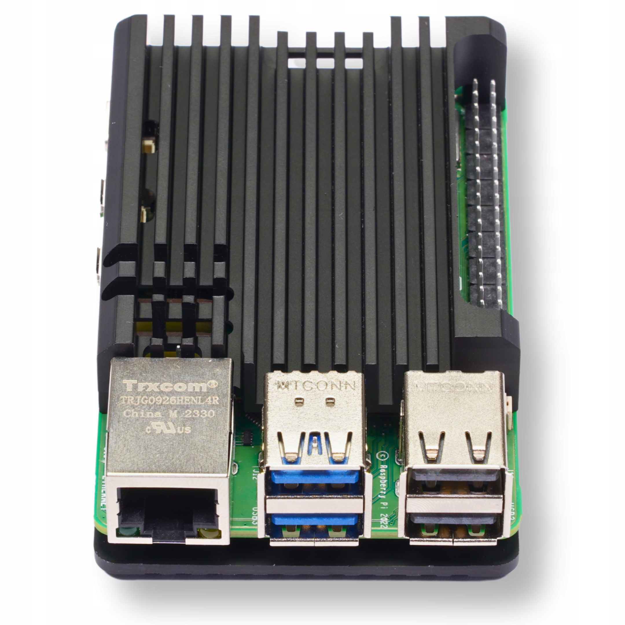 Черный алюминиевый корпус Raspberry Pi 5 служит эффективным радиатором. Благодаря фрезерованным элементам в верхней части, которые после использования входящих в комплект термопрокладок обеспечивают прямое соединение с процессором и оперативной памятью, корпус эффективно рассеивает тепло, повышая эффективность охлаждения. Он также обеспечивает надежную защиту ключевых компонентов устройства от механических повреждений и непреднамеренного короткого замыкания.