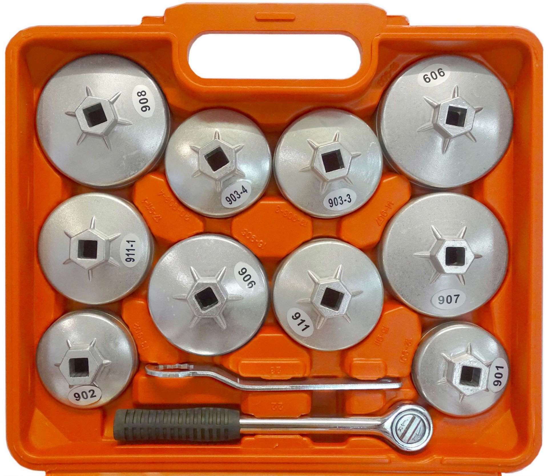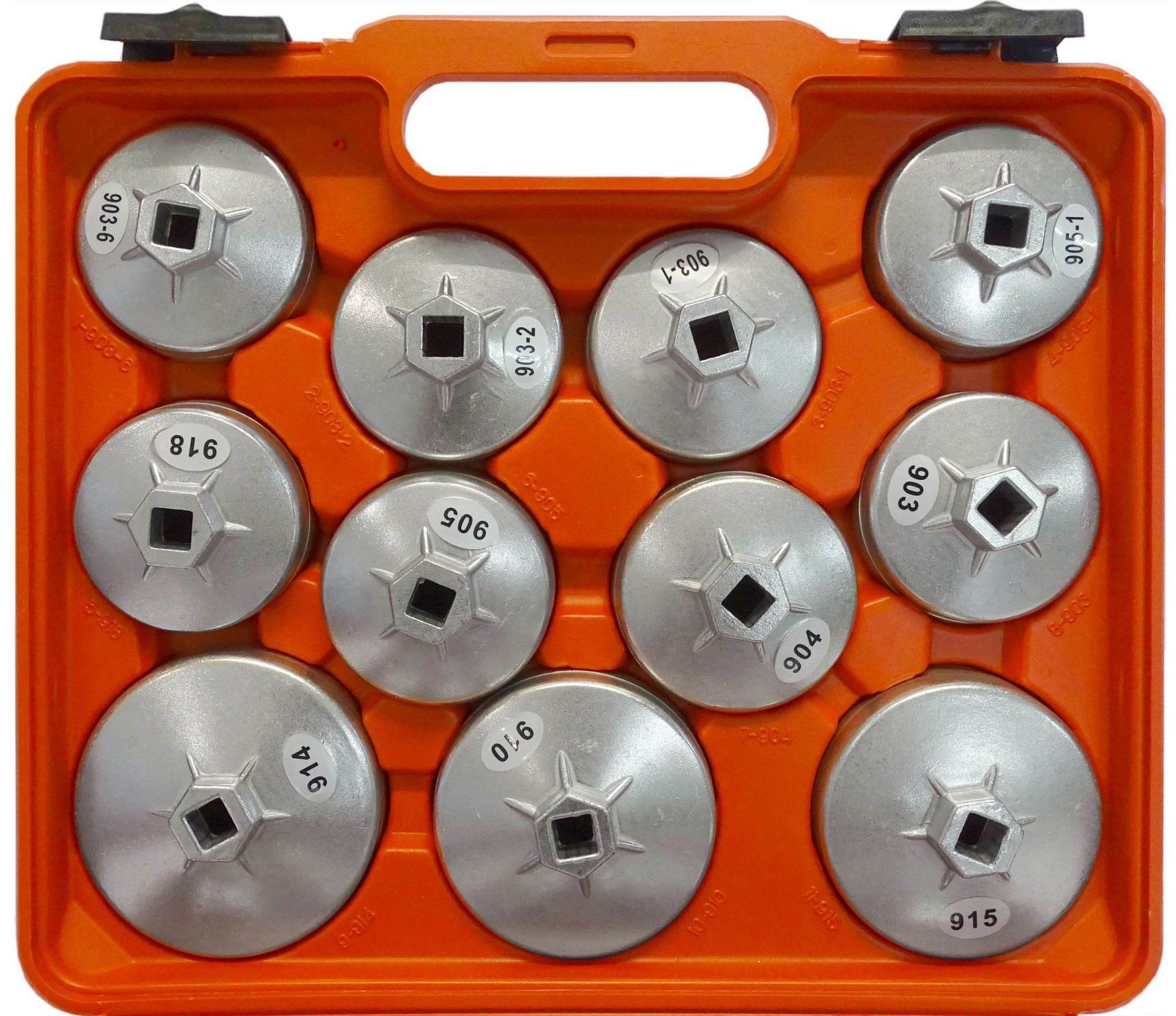 Набор из 21 головки для откручивания масляных фильтров. Подходит для большинства легковых автомобилей, выпускаемых на рынках Европы, Америки и Азии.