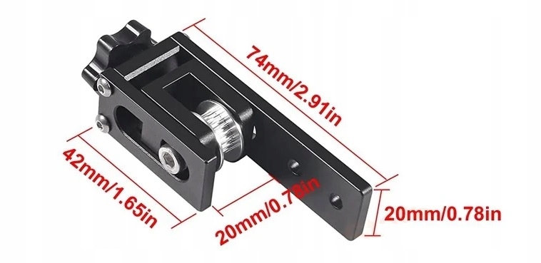 АЛЮМИНИЕВЫЙ, АНОДИРОВАННЫЙ НАТЯЖИТЕЛЬ РЕМНЯ GT3 С ГЛАДКИМ РОЛИКОМ, ПОДХОДЯЩИЙ ДЛЯ ПРОФИЛЕЙ V-ПАЗ, Т-ПАЗ 20x20, 20x40, 20x60, 20x80, C-ЛУЧИ И ОСИ X, Y, Z - 1 шт.