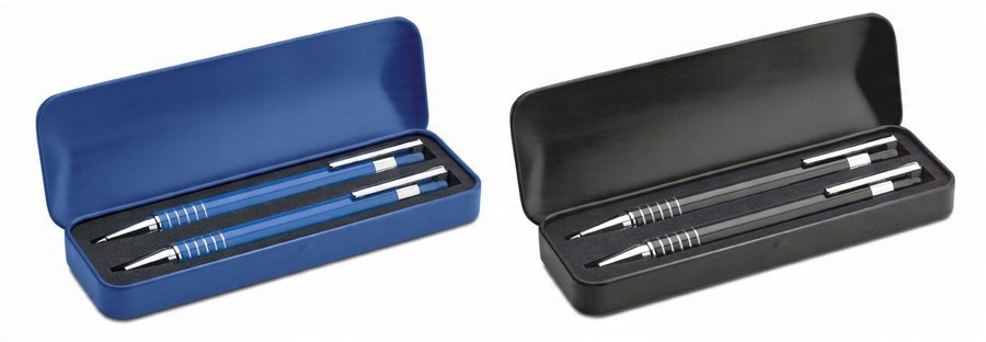 Алюминиевый письменный набор: прижимная шариковая ручка с синим стержнем и механическим карандашом,