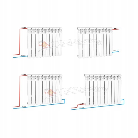 Возможность традиционного подключения (бокового), а также поперечного и нижнего подключения - как на рисунке выше.