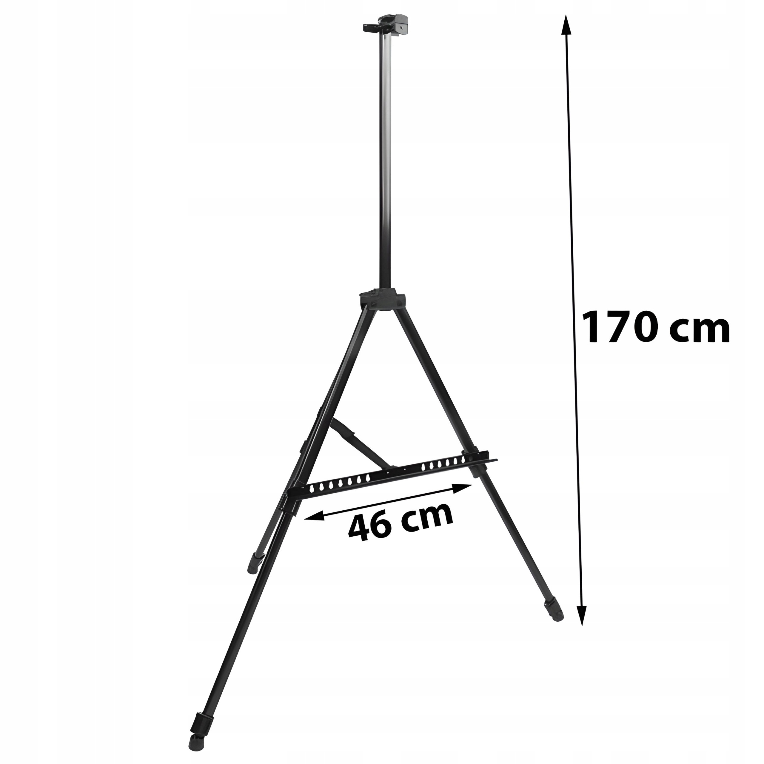 Мольберт регулируется по высоте от 55 до 170 см. Благодаря регулируемой полосе, поддерживающей полотно, мы можем отрегулировать высоту до нужного уровня.