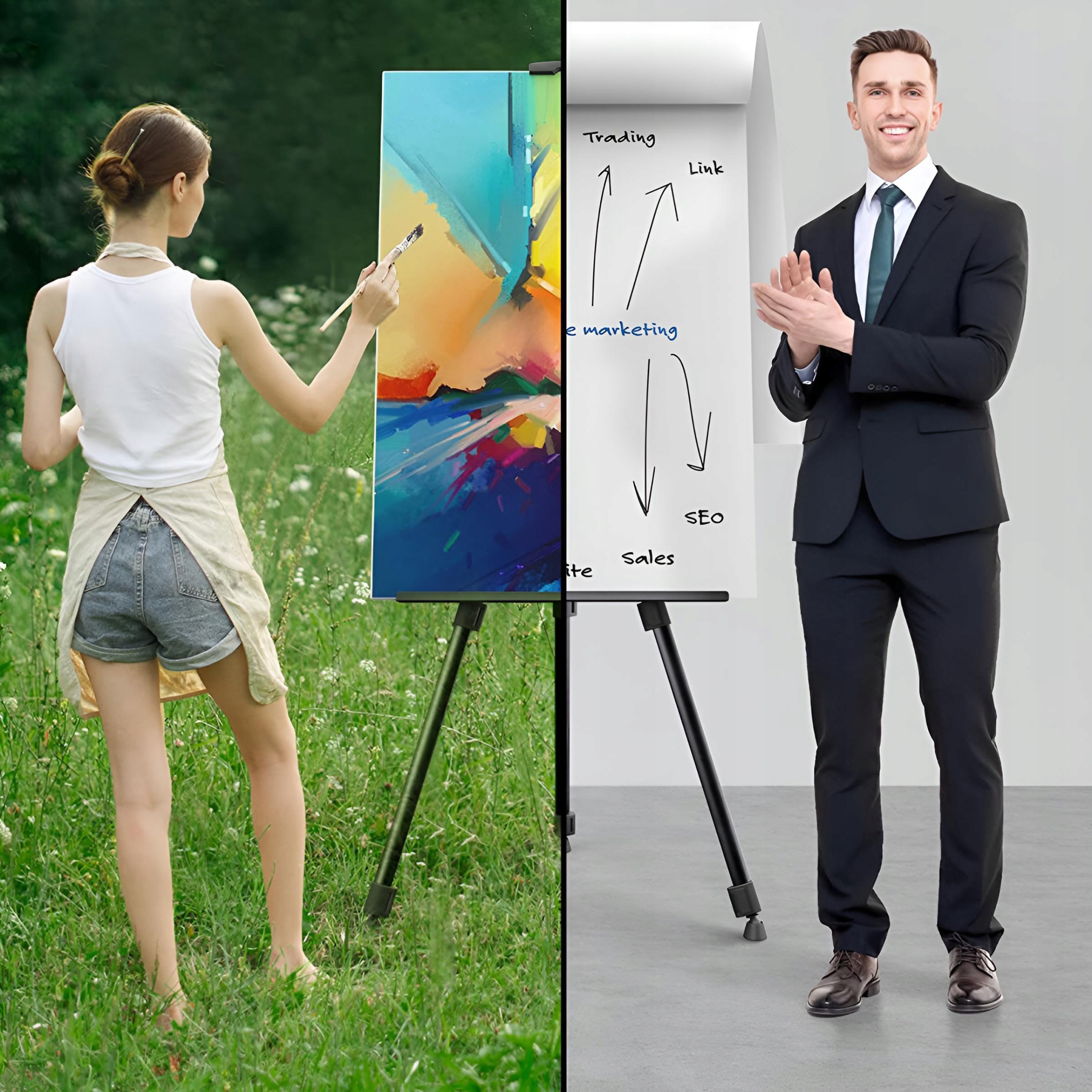 Поворотные, нескользящие ножки отрегулируйте угол наклона к земле, таким образом мольберт всегда будет устойчив.