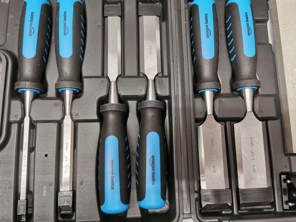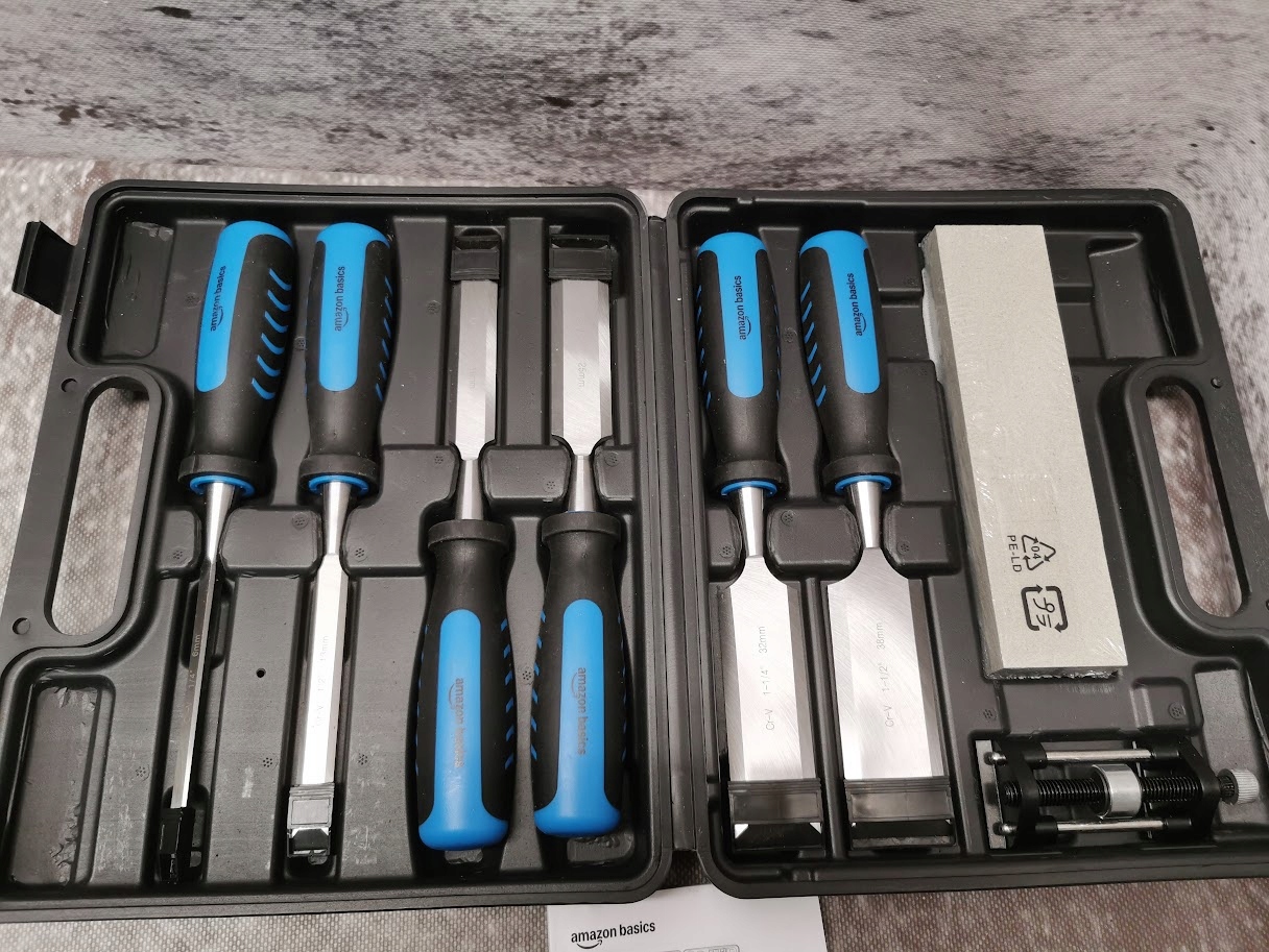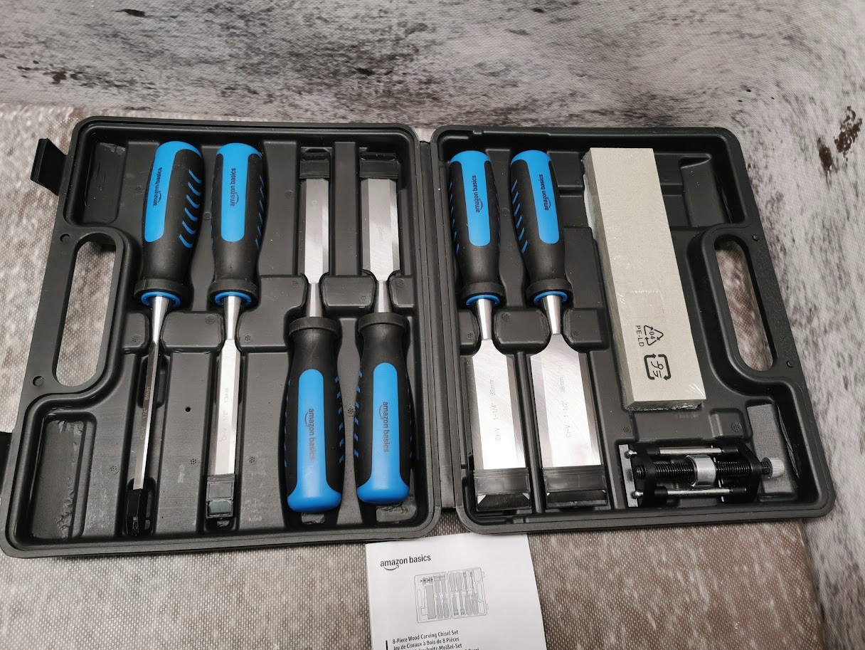 Набор долот Amazon Basics для резьбы по дереву с направляющей для шлифования, шлифовальным камнем и футляром для хранения, 8 предметов