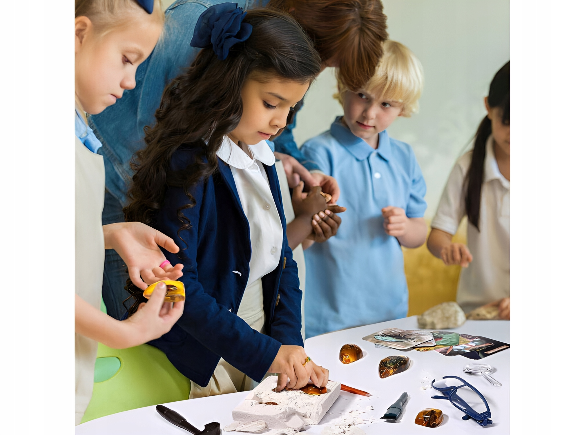 Веселье с этим набором развивает много важных навыков у ребенка, таких как координация рук, ручные навыки и творчество. Изучение и копание янтаря вовлекает воображение и стимулирует когнитивное развитие.