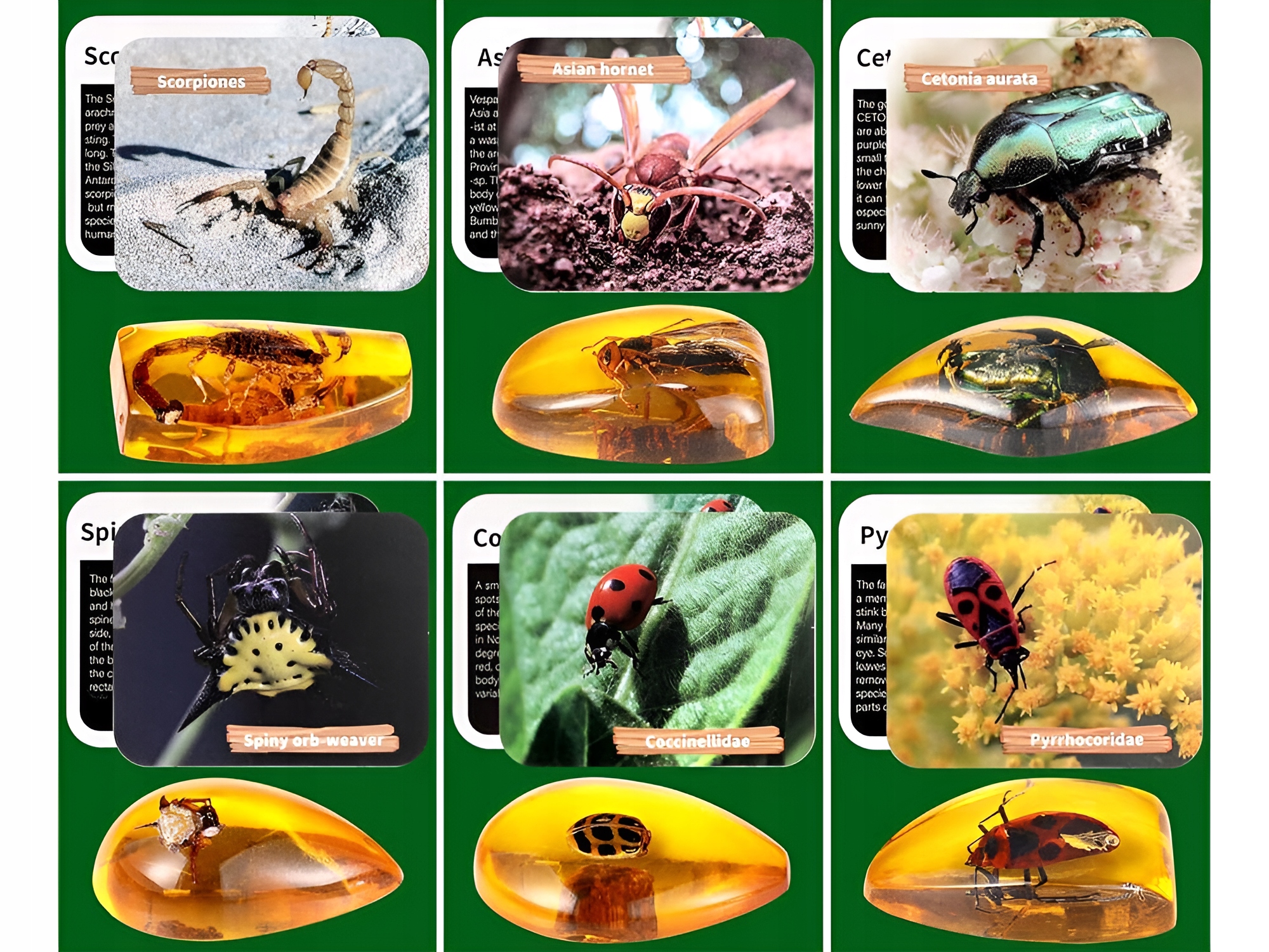 Мы представляем археологический набор с окаменелостями насекомых в янтаре.