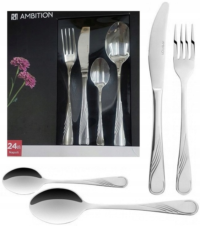AMBITION 24 NAPOLI НАБОР СТОЛОВЫХ ПРИБОРОВ НА 6 ЧЕЛОВЕК, НЕРЖАВЕЮЩАЯ WAVE CLASSIC