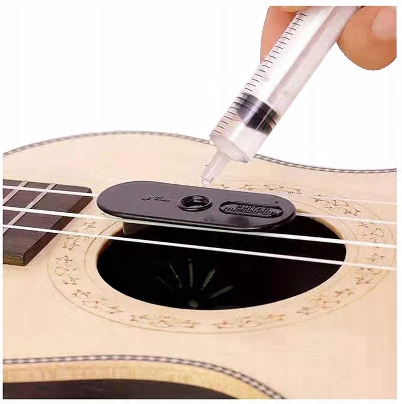 Увлажнитель гитары защищает инструмент от повреждений даже в самой сухой среде. Резервуар для воды расположен внутри гитары, и система медленно и непрерывно выпускает влагу для поддержания соответствующего уровня влажности. На гитаре нет зажимов или других приспособлений, которые могли бы поцарапать или повредить ее.