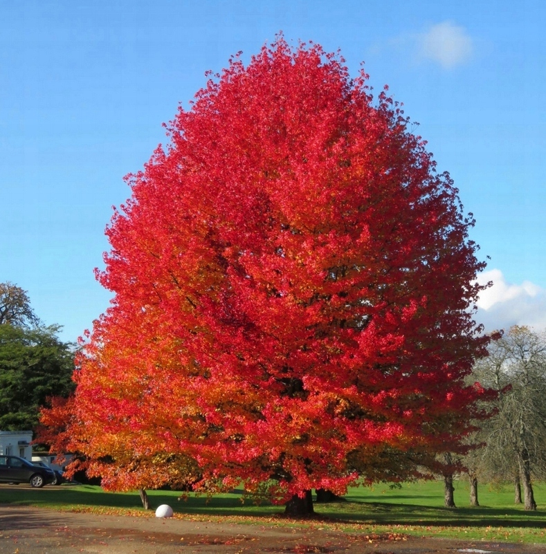 Среднее дерево, достигающее высоты 10-20 м и ширина 6-8 м. Он характеризуется четким руководством и короной, которая первоначально имеет коническую форму, и с возрастом становится овальным. листья напоминают листья кленовых листьев, и осенью они превращаются в интенсивный алый или фиолетовый цвет , придавая растению уникальный вид. Он лучше всего растет в солнечных, плодородных, кислых или равнодушных почвах. Молодые копии чувствительны к морозу. Это очень декоративное дерево, особенно эффективное осенью.