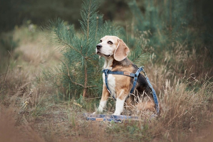 Амиплайский повод для маленькой собаки регулируется 6in1 джинсовая темно -синяя джинсовая ткань m