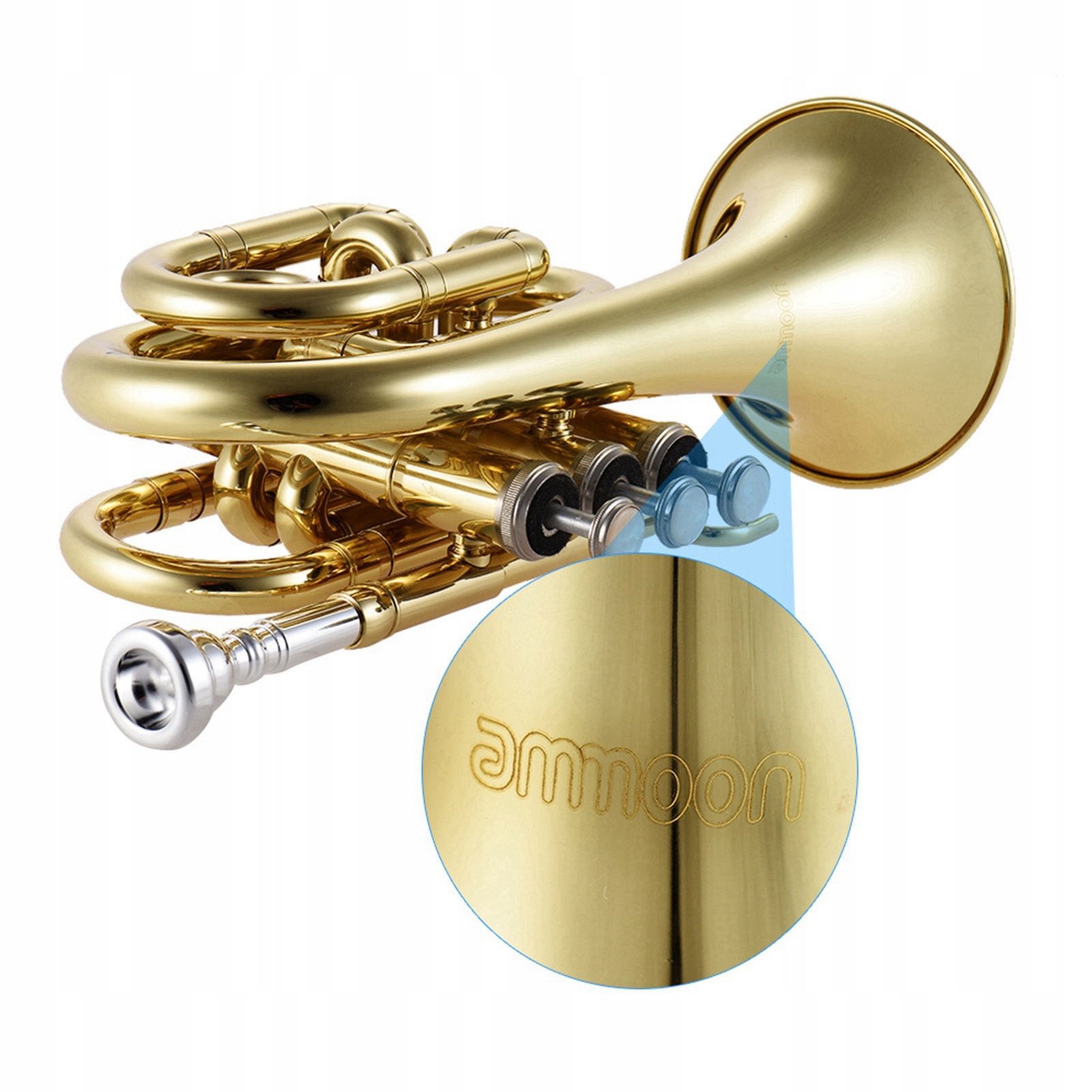 Ammoon Mini Pocket Bb Труба, плоский латунный духовой инструмент с перчатками, ткань для чистки мундштука, чехол для переноски