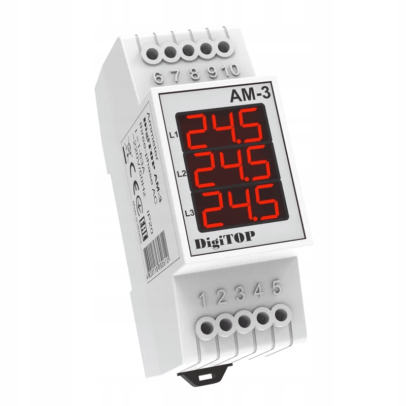 Амперметр цифровой АМ-3 - предназначен для измерения переменного тока частотой 50(±1)Гц в трехфазной сети с отображением значений тока на цифровых светодиодных индикаторах. Ток измеряется с помощью внешних трансформаторов тока (входят в комплект поставки).