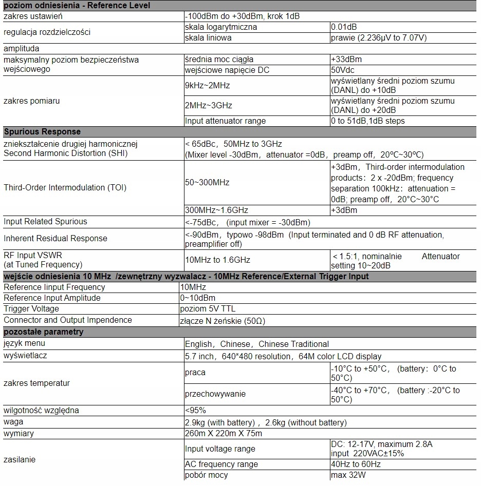 Сравнение параметров анализаторов спектра Hantek HSA2016: