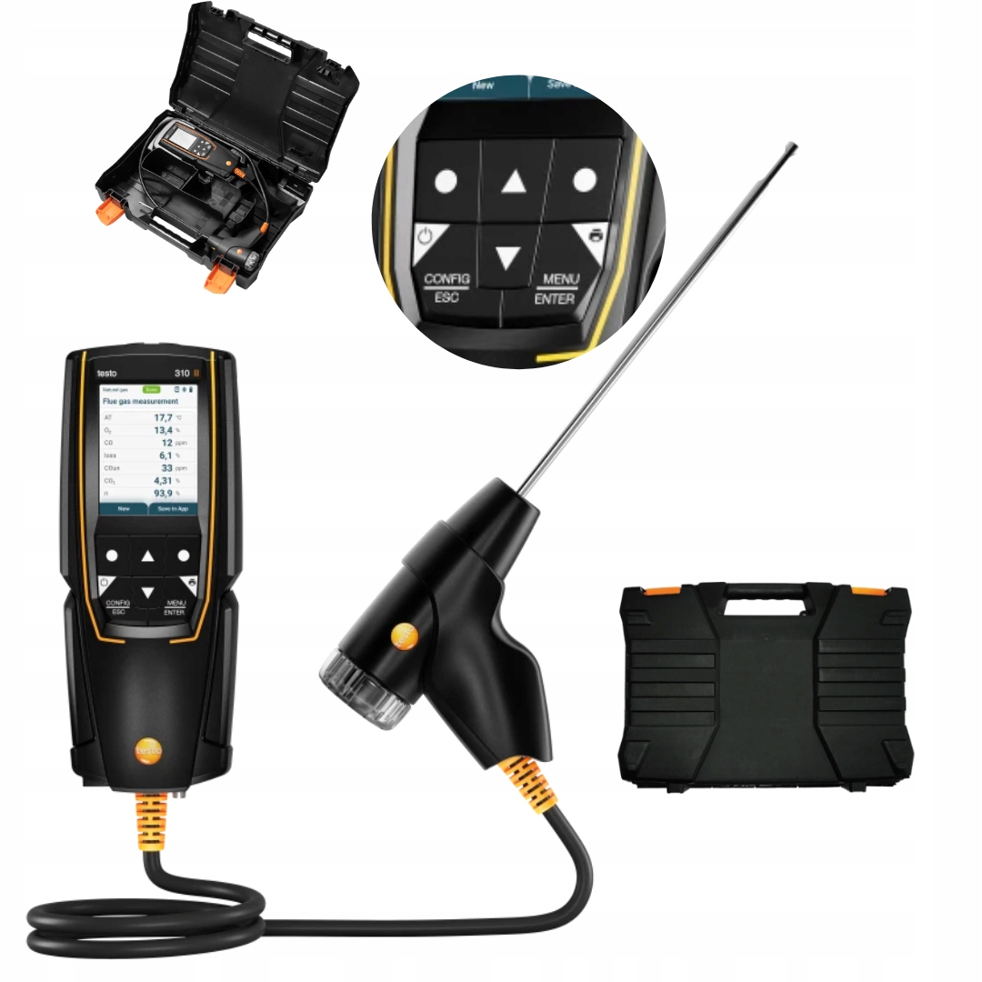 <ул>Новый анализатор дымовых газов Testo 310 (2-го поколения) — надежный прибор для измерения показателей сгорания в газовых и жидкотопливных котлах. Оснащенный цветным экраном и простым интерфейсом, он предлагает четыре меню измерений: выхлопные газы, тяга дымохода, окружающий CO и давление. Приложение Testo Smart позволяет управлять устройством и отправлять результаты через Bluetooth. Testo 310 (2-го поколения) обеспечивает быстрое обнуление датчика и соответствует стандартам EN50379-1/-3.